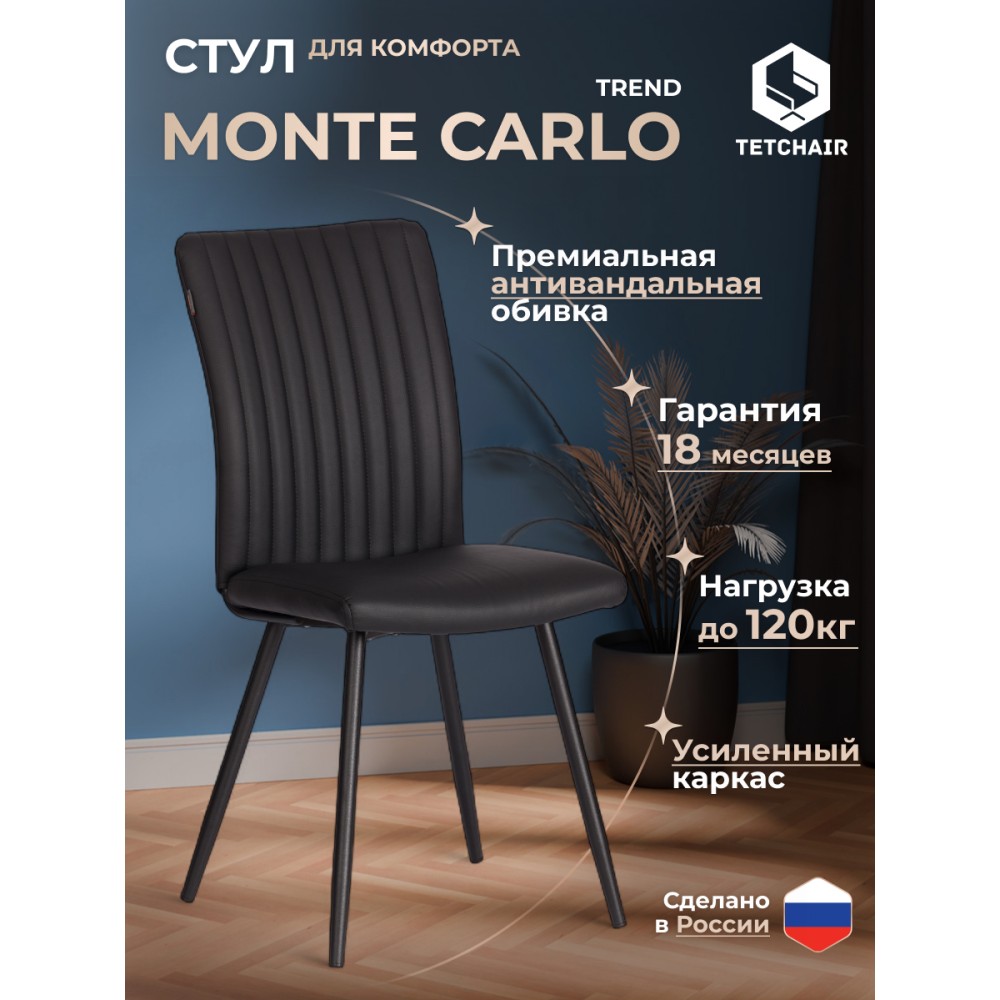 Обеденный стул Monte Carlo/Монте Карло Trend/Тренд - отличный вариант для кухни, столовой или гостиной. Модель идеально подойдет для городской квартиры или загородного дома. Сиденье из гнутоклееного шпона 10 мм, каркас и спинка из окрашенного металлического профиля с мягким наполнителем из пенополиуретана (ППУ) высокой плотности (35 кг/м3) имеют долгий срок службы, обладают отличными эксплуатационными свойствами, не меняют форму со временем. Устойчивые конусообразные металлические опоры диаметром 25/16 мм и толщиной металла 1,2 мм, способны выдерживать большие нагрузки, завершают опоры пластиковые подпятники, которые уберегут ваш пол от царапин. Удобная спинка имеет эргономичную конструкцию и подстроится под любого человека, вместительное сиденье позволят расположиться с комфортом для продолжительного отдыха после трудового дня. Модель обита премиальной экокожей с высокой износостойкостью – 500000 циклов по тесту Мартиндейла. Такой материал практичен, прост в уходе, приятен на ощупь. Привлекательный обеденный стул Monte Carlo/Монте Карло Trend/Тренд прекрасно впишется в любой современный дизайн, разнообразит интерьер, поможет создать стильное пространство. Продаётся стул в разобранном виде, что делает транспортировку удобной. Сборка стула проста и понятна благодаря прилагаемой инструкции. - Нагрузка: Стул рассчитан на статичную нагрузку до 120 кг.