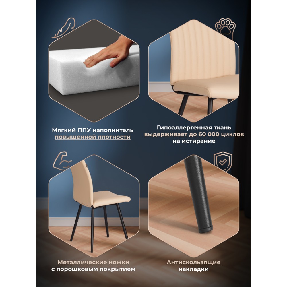 Обеденный стул Monte Carlo/Монте Карло Trend/Тренд - отличный вариант для кухни, столовой или гостиной. Модель идеально подойдет для городской квартиры или загородного дома. Сиденье из гнутоклееного шпона 10 мм, каркас и спинка из окрашенного металлического профиля с мягким наполнителем из пенополиуретана (ППУ) высокой плотности (35 кг/м3) имеют долгий срок службы, обладают отличными эксплуатационными свойствами, не меняют форму со временем. Устойчивые конусообразные металлические опоры диаметром 25/16 мм и толщиной металла 1,2 мм, способны выдерживать большие нагрузки, завершают опоры пластиковые подпятники, которые уберегут ваш пол от царапин. Удобная спинка имеет эргономичную конструкцию и подстроится под любого человека, вместительное сиденье позволят расположиться с комфортом для продолжительного отдыха после трудового дня. Модель обита премиальной экокожей с высокой износостойкостью – 500000 циклов по тесту Мартиндейла. Такой материал практичен, прост в уходе, приятен на ощупь. Привлекательный обеденный стул Monte Carlo/Монте Карло Trend/Тренд прекрасно впишется в любой современный дизайн, разнообразит интерьер, поможет создать стильное пространство. Продаётся стул в разобранном виде, что делает транспортировку удобной. Сборка стула проста и понятна благодаря прилагаемой инструкции. - Нагрузка: Стул рассчитан на статичную нагрузку до 120 кг.
