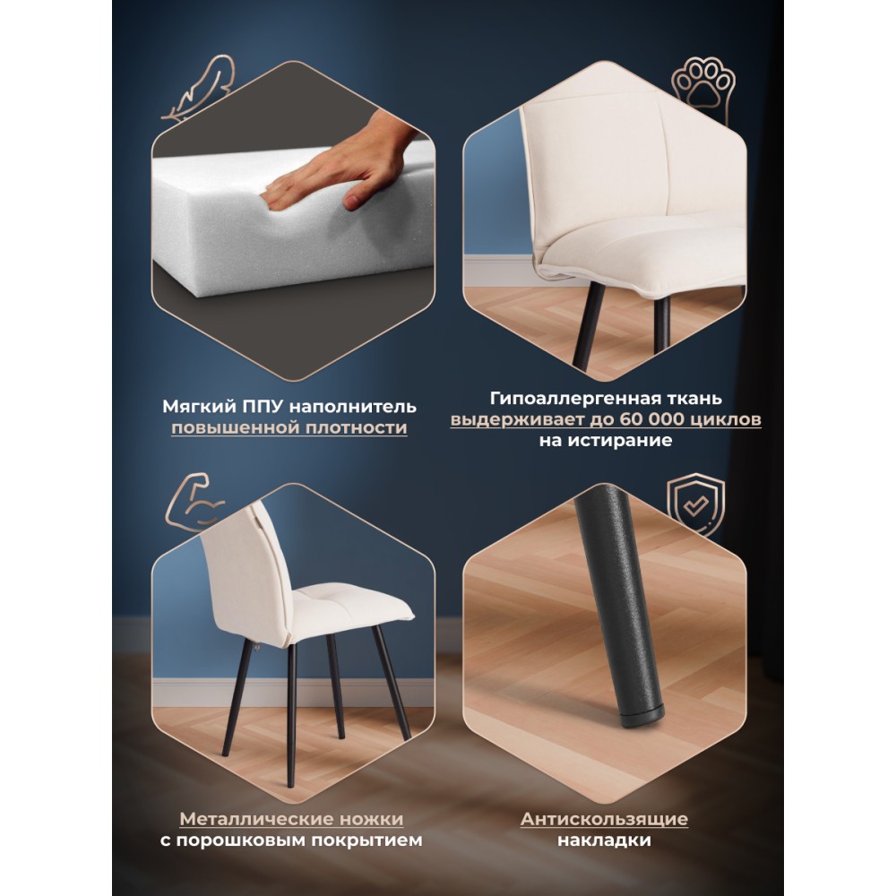 Стул Sweet LT - отличная возможность разнообразить интерьер городской квартиры или загородного дома. Оригинальная модель отлично подойдет для кухни, спальни, гостиной, столовой или прихожей. Каркас и спинка: ОКРАШЕННЫЙ металлический профиль обеспечивает надежность и долговечность, а высокая, эргономичная спинка с эффектом "Гамака" обеспечивает комфорт во время сидения. Сиденье: гнутоклееный шпон толщиной 10 мм придаёт надежность и несет функцию несущей конструкции, не деформируются со временем, выдерживают любые виды нагрузок. Наполнитель из пенополиуретана (ППУ) высокой плотности (35 кг/м3) сохраняет свой форму на протяжении длительного времени, обеспечивая комфорт ПРИ СИДЕНИИ. Обивка из велюра не только приятна на ощупь, но и устойчива к износу, что делает этот стул идеальным для повседневного использования. Прочные конусообразные металлические опоры диаметром 26/16 мм с толщиной металла 1,2 мм надежны и устойчивы к усиленной эксплуатации. Вместительное сиденье, удобная спинка, привлекательный дизайн – модель Sweet LT идеально впишется в любой современный интерьер и станет стильным акцентом в домашнем пространстве. Стул поставляется в разобранном виде, необходима простая сборка по прилагаемой инструкции. Стул рассчитан на статичную максимальную нагрузку до 120 кг.