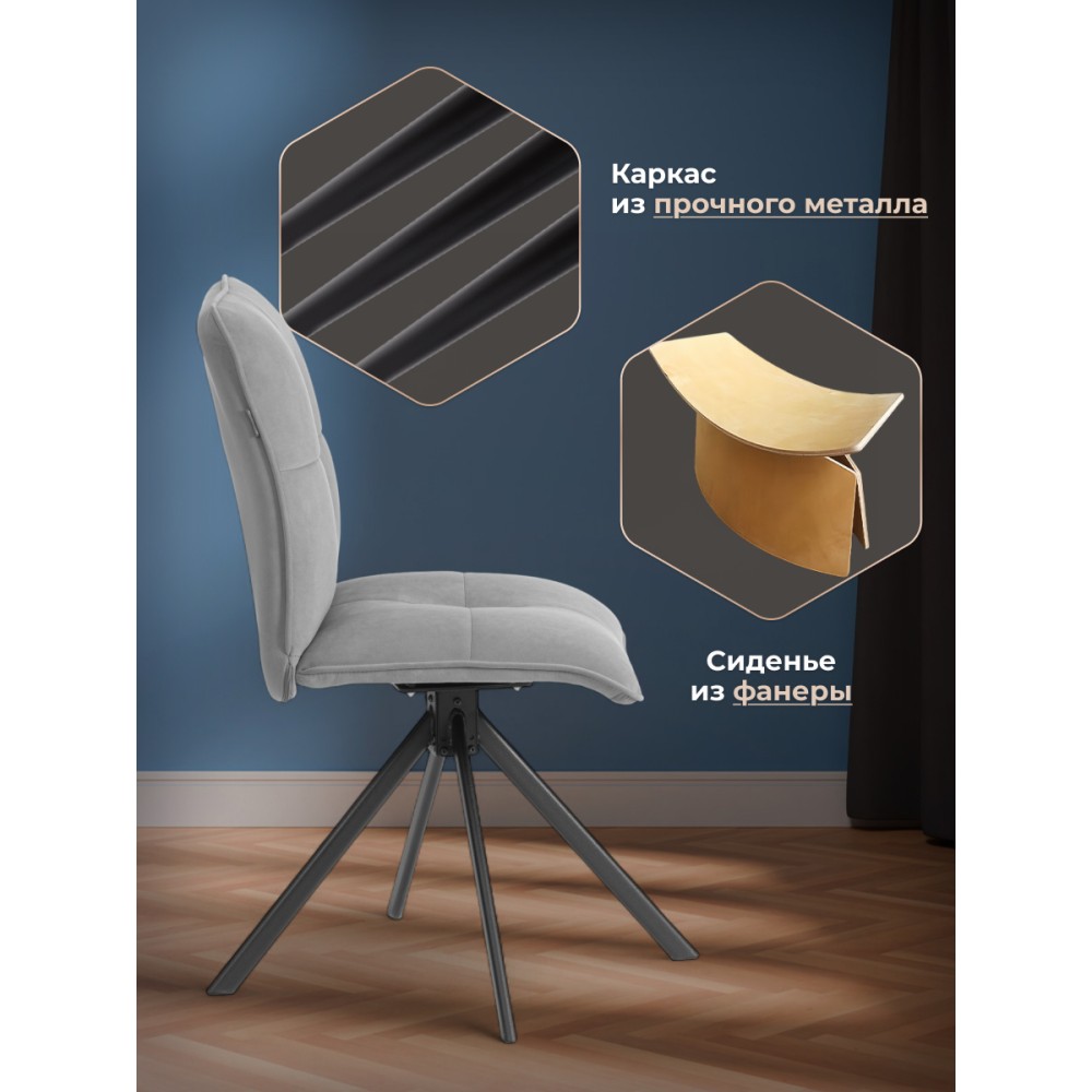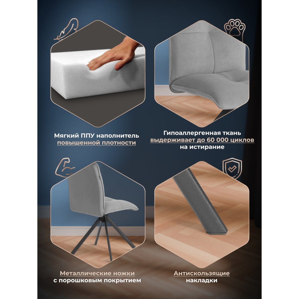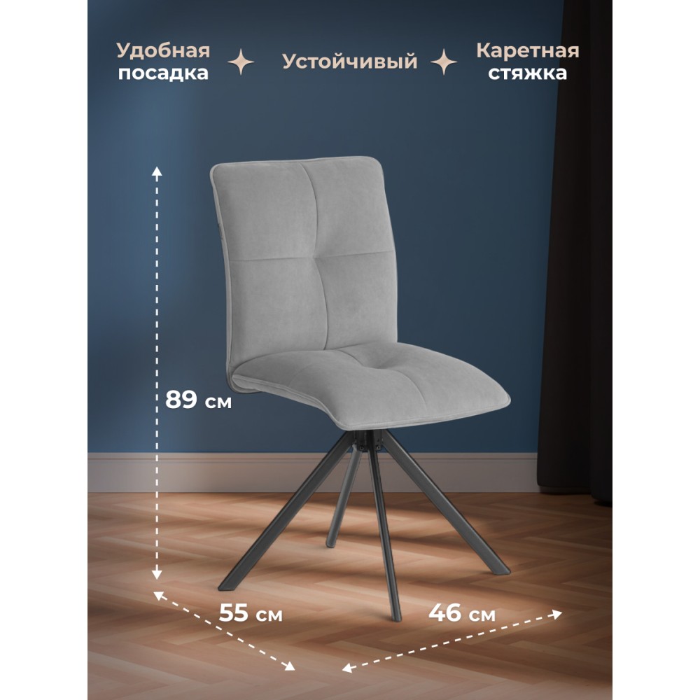 Стул Sweet - отличная возможность разнообразить интерьер городской квартиры или загородного дома. Оригинальная модель отлично подойдет для кухни, спальни, гостиной, столовой или прихожей. Каркас и спинка: ОКРАШЕННЫЙ металлический профиль обеспечивает надежность и долговечность, а высокая, эргономичная спинка с эффектом "Гамака" обеспечивает комфорт во время сидения. Сиденье: гнутоклееный шпон толщиной 10 мм придаёт надежность и несет функцию несущей конструкции, не деформируются со временем, выдерживают любые виды нагрузок. Наполнитель из пенополиуретана (ППУ) высокой плотности (35 кг/м3) сохраняет свой форму на протяжении длительного времени, обеспечивая комфорт при сидении. Обивка из велюра не только приятна на ощупь, но и устойчива к износу, что делает этот стул идеальным для повседневного использования. Прочные металлические опоры надежны и устойчивы к усиленной эксплуатации. Поворотный механизм в стульях — это инновационное решение, которое позволяет пользователям легко вращаться вокруг оси без необходимости передвигать сам стул. Вместительное сиденье, удобная спинка, привлекательный дизайн – модель Sweet идеально впишется в любой современный интерьер и станет стильным акцентом в домашнем пространстве. Стул поставляется в разобранном виде, необходима простая сборка по прилагаемой инструкции. Стул рассчитан на статичную максимальную нагрузку до 120 кг.