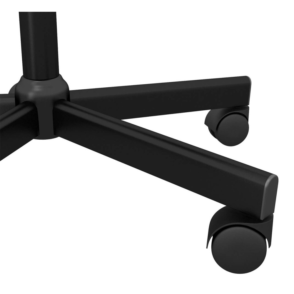 Широкая площадь опоры и пять лучей делают каркас устойчивым и надежным. Каркас выполнен из алюминия, что придает ему особую прочность, и в тоже время легкость. Покрыт порошковой краской, устойчивой к механическим повреждениям. Колеса выполнены из полипропилена и имеют резиновую основу, которая отличается устойчивой упругостью и выдерживает продолжительные нагрузки.