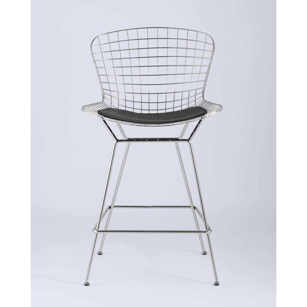 Стул полубарный с низкой спинкой Bertoia хромированный металл с черной подушкой из экокожи