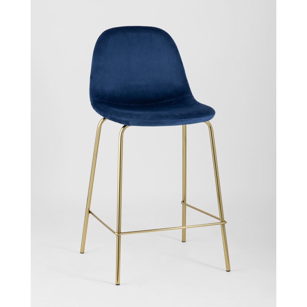 Стул полубарный Валенсия велюр синий золотые ножки УТ000004426