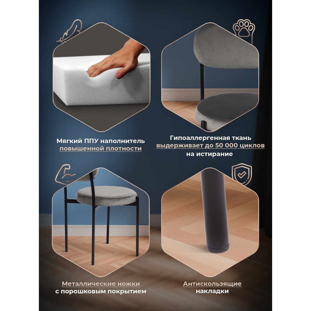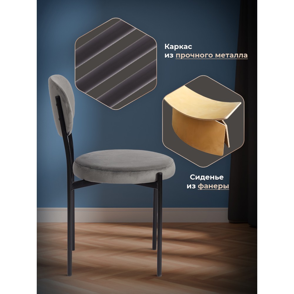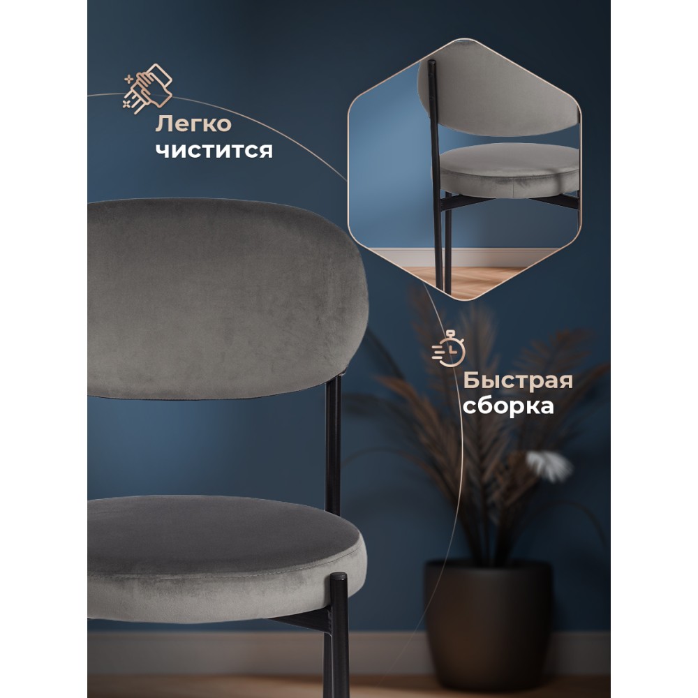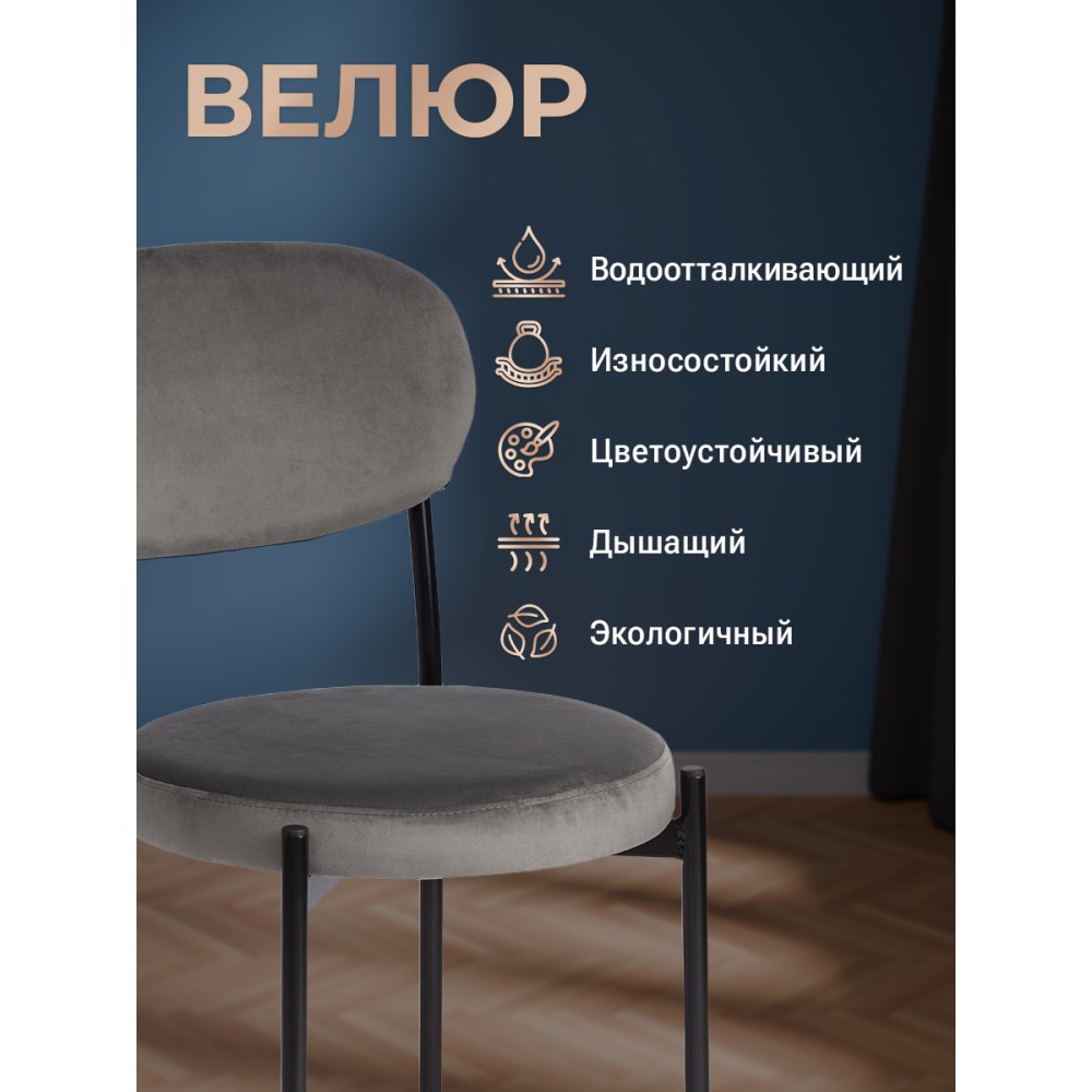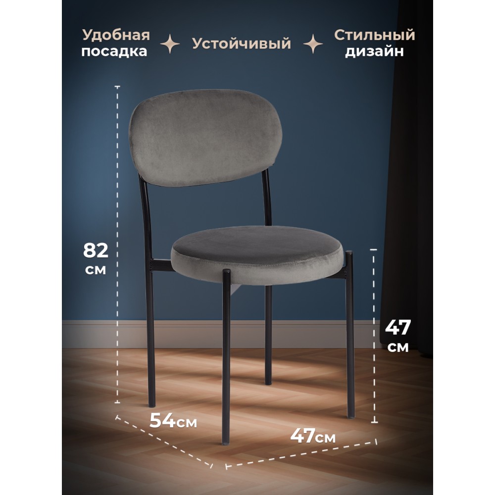 Изящная форма и оригинальный дизайн стула REVO из коллекции Modern позволят привлечь внимание и сделать яркий акцент в вашем интерьере. Принципы лаконичности ярко прослеживаются в дизайне стула. Он прекрасно впишется в обстановку гостиной, кухни, столовой или спальни. Сочетание тонких металлических ножек черного цвета и серой обивки выглядит привлекательно, стильно, современно. Удобное сиденье и спинка позволяют комфортно сидеть продолжительное время. Теплая бархатистая поверхность обивки обеспечит максимальный уют и комфорт. Тканевая обивка обладает повышенной износостойкостью, гипоаллергенна и способна на долгие годы сохранить свой первоначальный цвет, не протираясь и не выцветая. Металлический каркас стула прочен, надежен, основателен. Стул хорошо подойдет для гостиной, для кухни, для спальни, для ресторана или для кафе. Стул очень прост в сборке, инструкция по сборке прилагается.