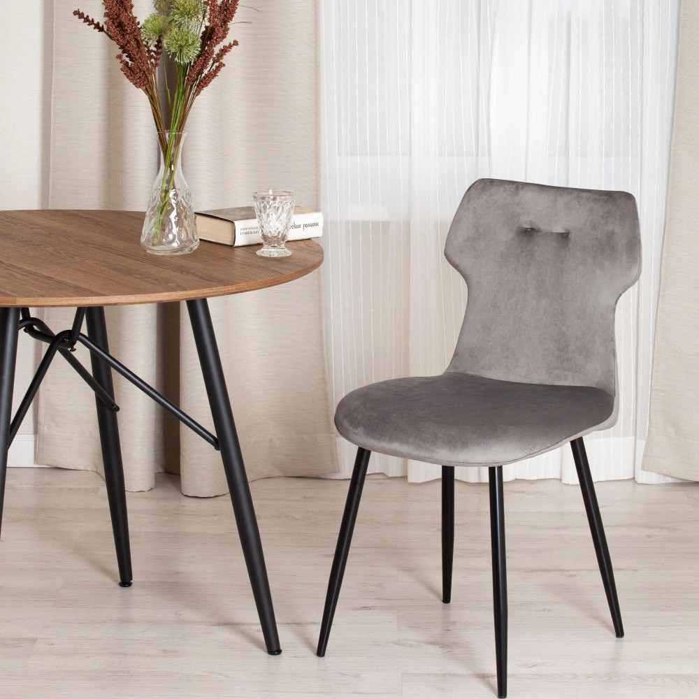 Легкий и элегантный стул ROBOCOP из коллекции Modern украсит собой любую домашнюю обстановку. Стул будет хорошо смотреться в интерьере гостиной, кухни, столовой или спальни. Удобное сиденье и спинка располагают к длительному времяпрепровождению и комфортному отдыху. Мягкая и приятная на ощупь обивка благородного серого цвета, украшенная небольшой прошивкой, в сочетании с удобными формами делает стул ROBOCOP настолько уютным, что с него не хочется вставать. Тканевая обивка из вельвета обладает повышенной износостойкостью, пропускает воздух, не меняет форму и способна на долгие годы сохранить свой первоначальный цвет, не протираясь и не выцветая. Благодаря прочному каркасу и металлическим ножкам, модель надежна и основательна. Стул хорошо подойдет для гостиной, для кухни, для спальни, для ресторана или для кафе. Стул очень прост в сборке, инструкция по сборке прилагается.