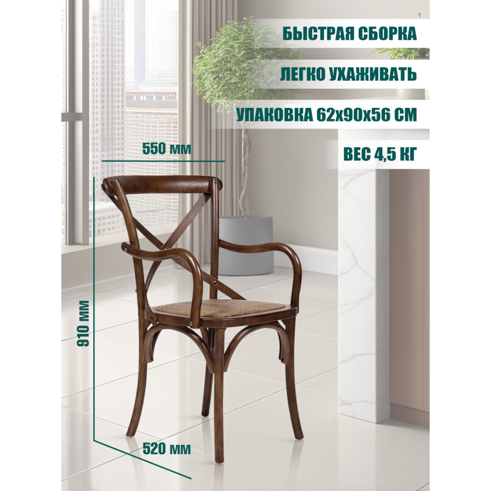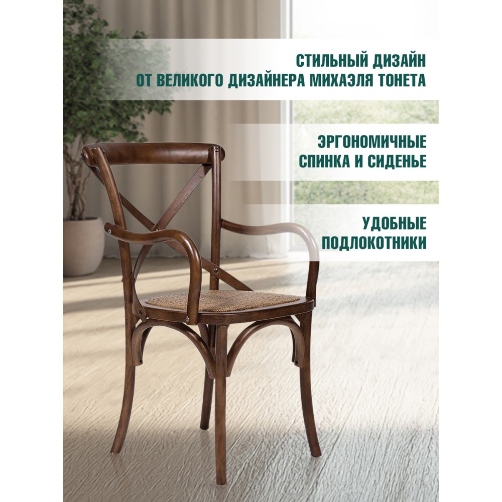 Легкий и элегантный дизайн, простые линии и естественные цвета классического венского стула Secret De Maison CROSS украсят собой любую домашнюю обстановку. Модель выполнена в стиле классического венского стула Михаэля Тонета, который в начале XIX века спроектировал его, используя технологию гнутья древесины. Сочетание плетеного сиденья из натурального ротанга и каркаса из массива березы, покрашенного в цвет темный орех, придает стулу особенную красоту и оригинальность. Эргономичная спинка, удобное сиденье и высокие подлокотники позволяют комфортно сидеть в течение длительного времени. Конструкция изделия разработана с учетом равномерного распределения нагрузки. Натуральный ротанг и массив березы – прочные и долговечные материалы, не требующие специального ухода, способные выдерживать большую нагрузку. Стул будет радовать вас своим первоначальным видом долгие годы. Модель идеально сочетается с мебелью из коллекции THONET, поставляется в собранном виде.
