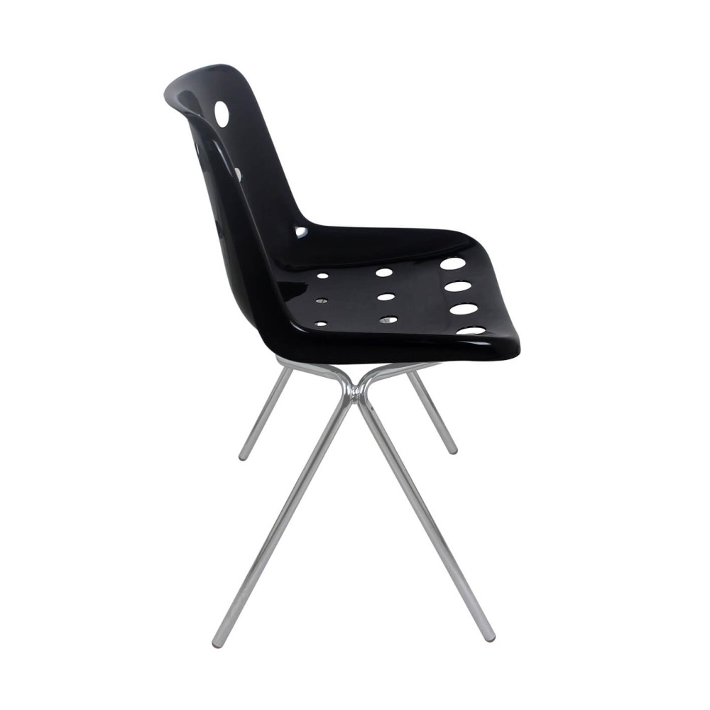 Глянцевое сидение изготовлено из полипропилена с армирующими добавками, каркас выполнен из металла с хромированным покрытием,. Все это обеспечивает высокую жесткость и надежность конструкции. Стул устойчив к ударам, воздействиям окружающей среды и появлению царапин. Способен выдерживать максимальную статическую нагрузку до 150 кг.