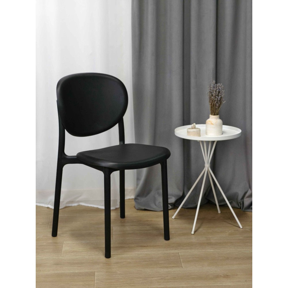 Благодаря округлой форме и объёмному силуэту, стул визуально воспринимается как мягкий и воздушный. Такой дизайн не только делает интерьер более лёгким, но и визуально добавляет уюта.