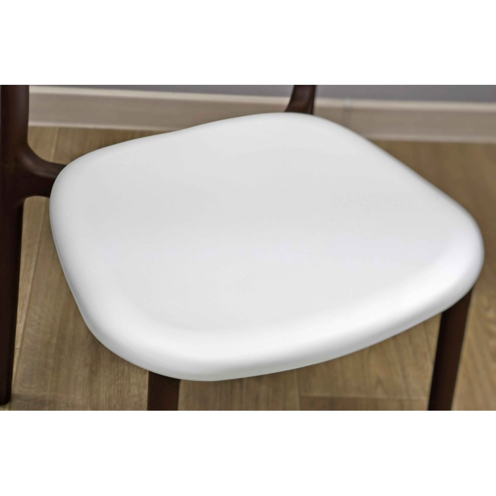 Благодаря округлой форме и объёмному силуэту, стул визуально воспринимается как мягкий и воздушный. Такой дизайн не только делает интерьер более лёгким, но и визуально добавляет уюта.