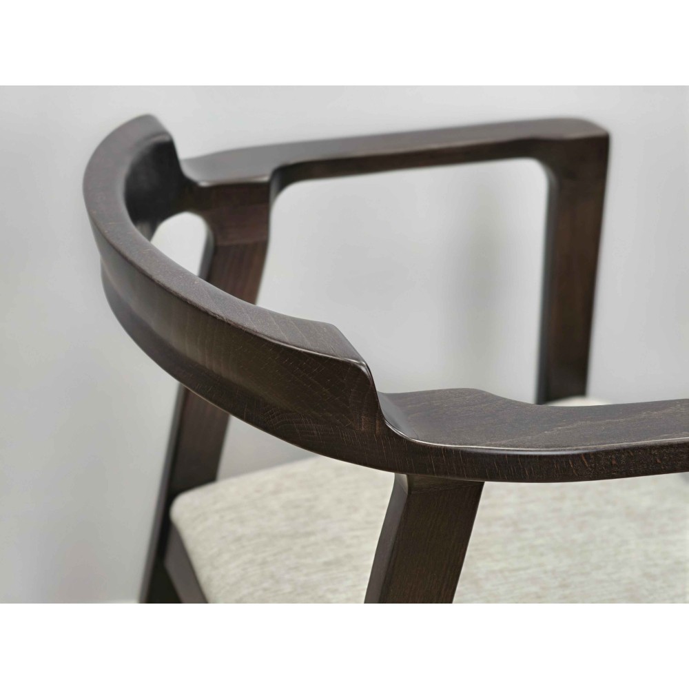 Стул SHT-S203 — воплощение утончённой простоты и благородства форм. Его плавные линии и сбалансированные пропорции создают ощущение лёгкости и элегантности. Мягко изогнутая спинка и плавные изгибы подлокотников образуют цельную архитектурную композицию, в которой функциональность встречается с эстетикой. Тёплый оттенок бука и текстура рогожки придают стулу характер предмета, созданного для пространств, где ценят детали и комфорт.