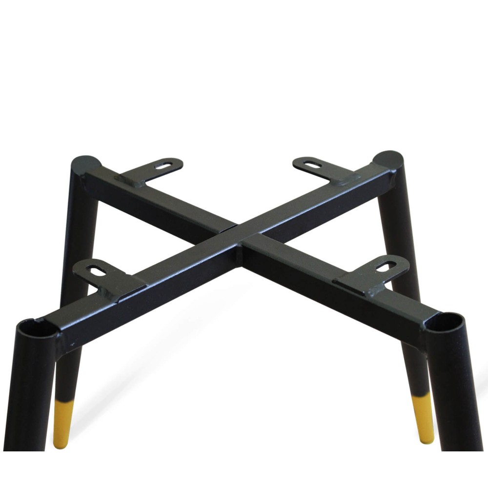 Ножки каркаса выполнены из металлической трубы диаметром 25 мм. Верхняя крестовина каркаса с приваренными фланцами выполнена из квадратной трубы 20х20 мм. Каркас не разборный и окрашен порошковой краской, устойчивой к механическому воздействию. Максимальная статическая нагрузка на каркас – 200 кг.
