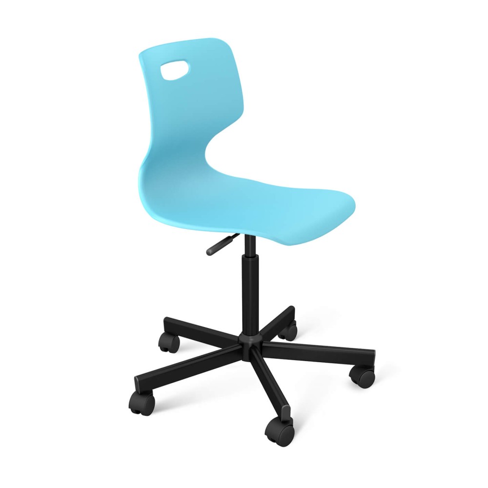 Колесные опоры позволяют легко перемещать готовый стул без лишних усилий, а так же удобно разворачиваться или отъезжать от стола. Имеется блокировка от укатывания.