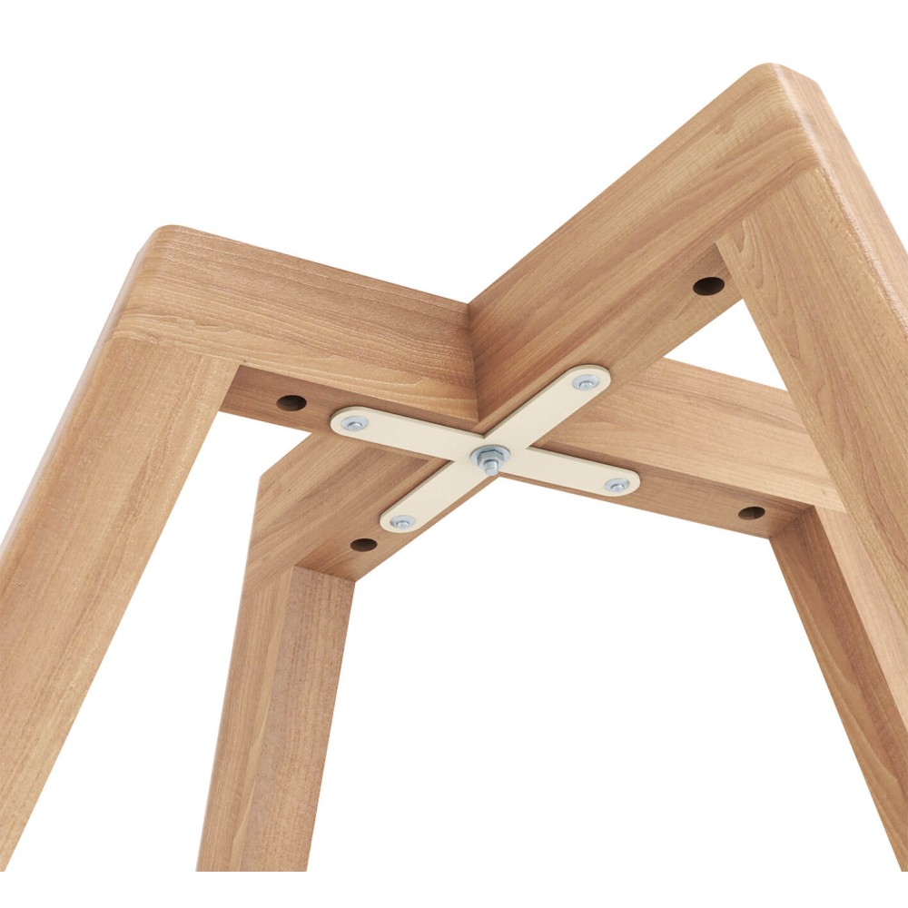 Каркас выполнен из МАССИВА ДРЕВЕСИНЫ с последующим тонированием и покрытием лаком. В модели предусмотрена металлическая крестовина, которая придает жесткость конструкции и продлевает срок службы, толщина крестовины 1,5 мм., крепится с помощью саморезов и мебельного болта с нижней стороны каркаса.