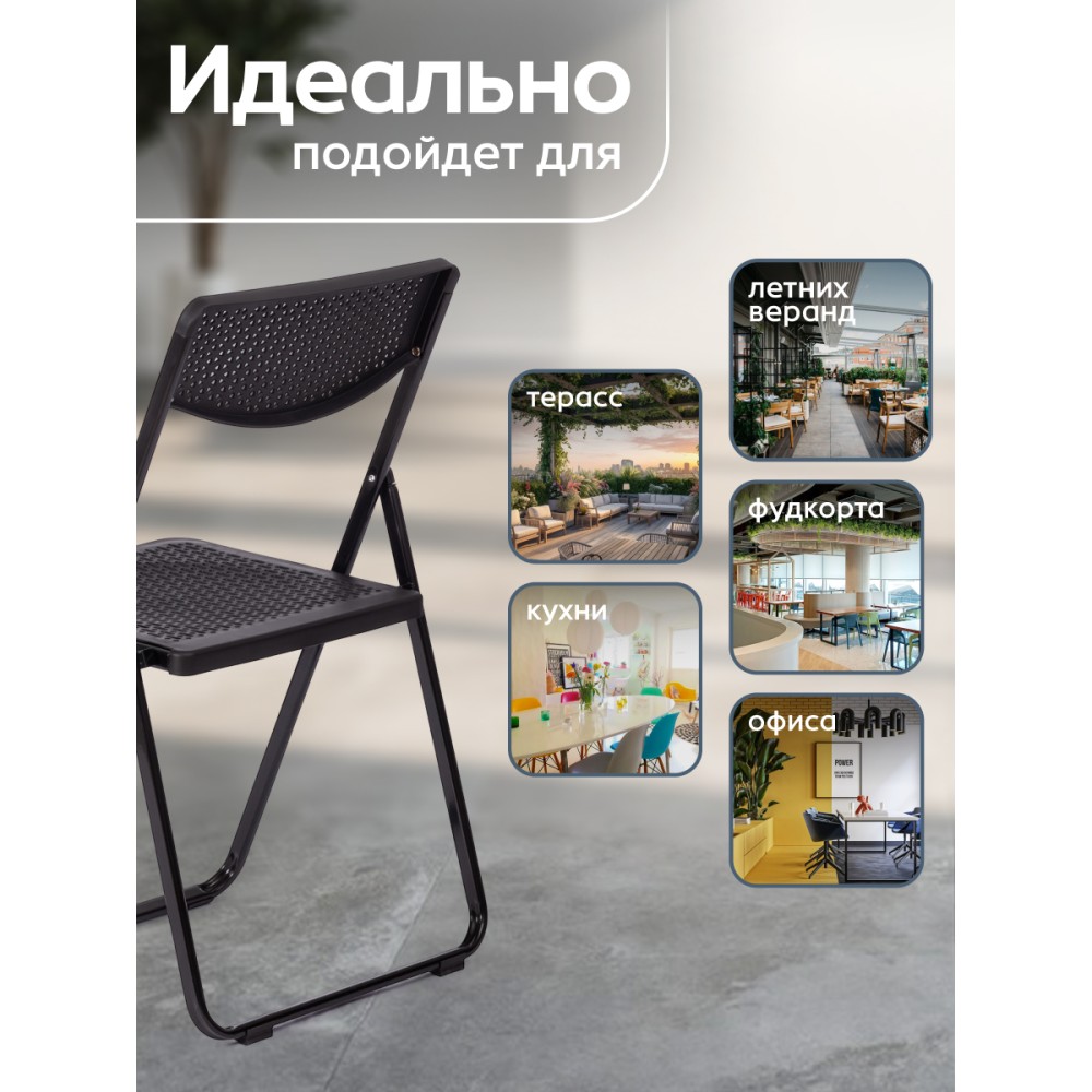 Удобный стул FOLDER mod. 3016 из коллекции Modern – идеальное решение даже для небольшого помещения. Удачное сочетание металлического каркаса с сиденьем из фигурного пластика черного цвета придает изделию особую привлекательность, оригинальность и визуальную легкость. Каркас изготовлен из высокопрочного металла, сиденье и спинка изготовлены из первичного литого пластика. Стул выдерживает вес до 100 кг. Простой и комфортный стул можно расположить в любом месте комнаты и переместить при необходимости. Он легко складывается и раскладывается, не занимает много места при хранении. Стул не требует сложного ухода и будет долгие годы радовать вас своим первоначальным видом. Стул хорошо подойдет для кухни, дачи , балкона, офиса, бар или кафе.