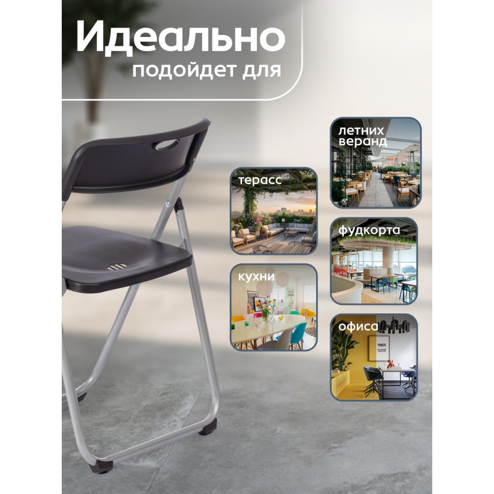 Удобный стул FOLDER mod. 3017H из коллекции Modern – идеальное решение даже для небольшого помещения. Удачное сочетание металлического каркаса с сиденьем из пластика черного цвета придает изделию особую привлекательность, оригинальность и визуальную легкость. Каркас изготовлен из высокопрочного металла, сиденье и спинка изготовлены из первичного литого пластика. Стул выдерживает вес до 100 кг. Простой и комфортный стул можно расположить в любом месте комнаты и переместить при необходимости. Он легко складывается и раскладывается, не занимает много места при хранении. Стул не требует сложного ухода и будет долгие годы радовать вас своим первоначальным видом. Стул хорошо подойдет для кухни, дачи , балкона, офиса, бар или кафе.