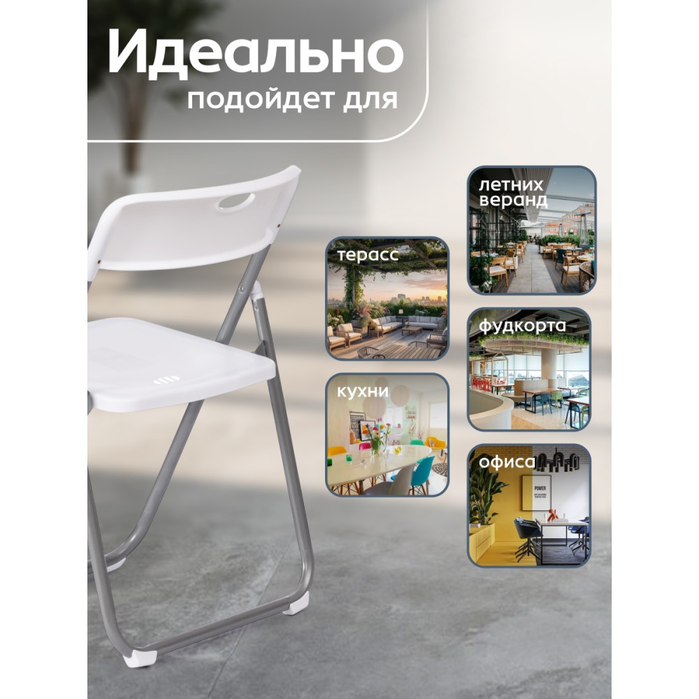 Удобный стул FOLDER mod. 3017H из коллекции Modern – идеальное решение даже для небольшого помещения. Удачное сочетание металлического каркаса с сиденьем из пластика белого цвета придает изделию особую привлекательность, оригинальность и визуальную легкость. Каркас изготовлен из высокопрочного металла, сиденье и спинка изготовлены из первичного литого пластика. Стул выдерживает вес до 100 кг. Простой и комфортный стул можно расположить в любом месте комнаты и переместить при необходимости. Он легко складывается и раскладывается, не занимает много места при хранении. Стул не требует сложного ухода и будет долгие годы радовать вас своим первоначальным видом. Стул хорошо подойдет для кухни, дачи , балкона, офиса, бар или кафе.