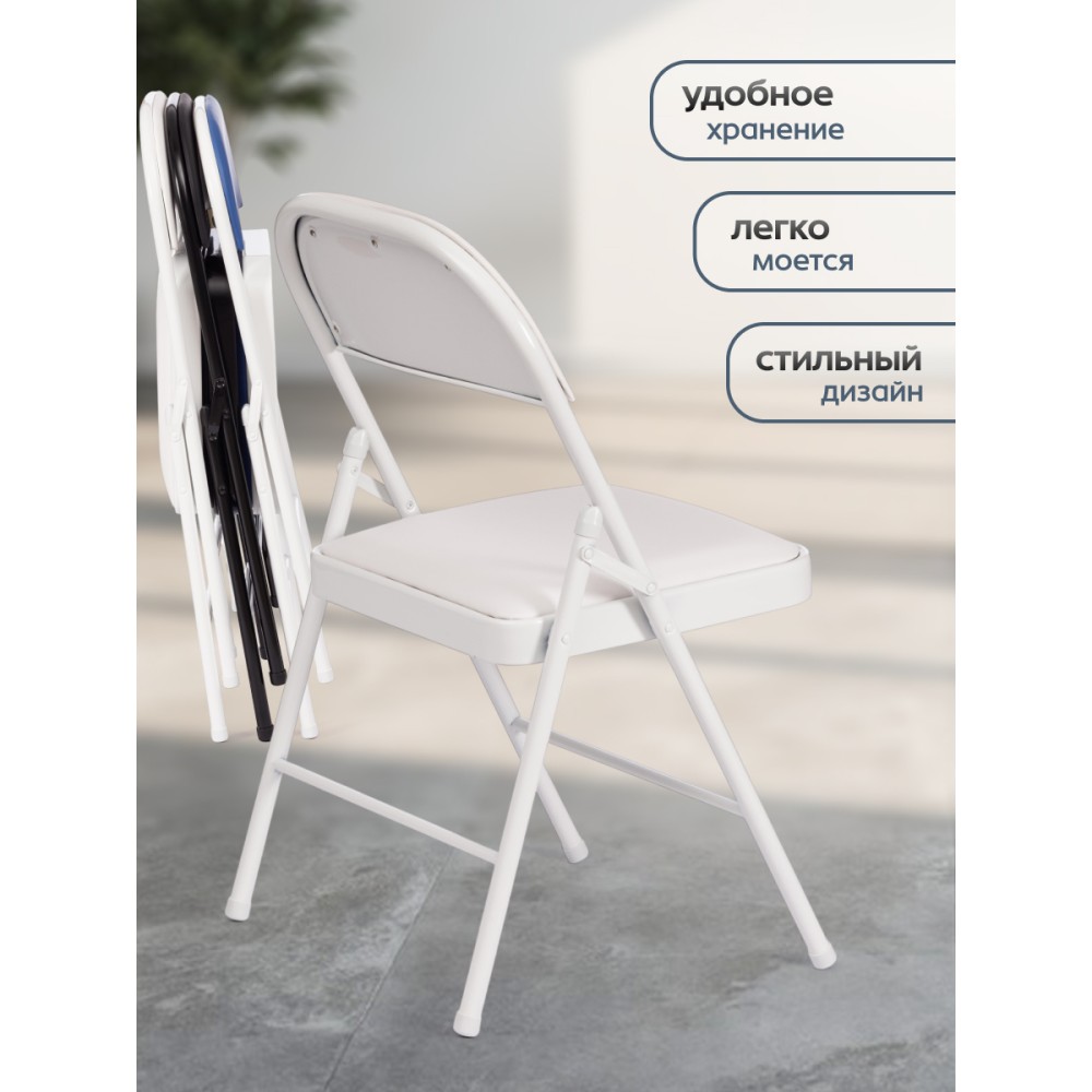 Удобный стул FOLDER mod. 3022G из коллекции Modern – идеальное решение даже для небольшого помещения. Он удобный и легкий. Удачное сочетание металлического каркаса белого цвета с сиденьем из экокожи белого цвета придает изделию особую привлекательность, оригинальность и визуальную легкость. В стуле используется экокожа прочностью 50 000 циклов по Мартендейлу. Простой и комфортный стул можно расположить в любом месте комнаты и переместить при необходимости. Он легко складывается и раскладывается, не занимает много места при хранении. Обивка из экокожи не мнётся, не меняет форму, экологична и гипоаллергенна. Надежный каркас изготовлен из металла, стул не требует сложного ухода и будет долгие годы радовать вас своим первоначальным видом. Стул хорошо подойдет для кухни, дачи , балкона, офиса, бар или кафе.