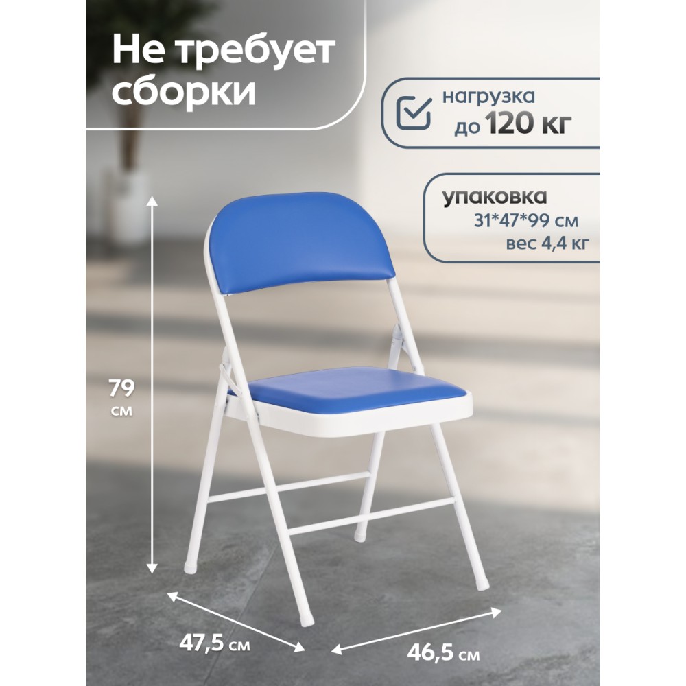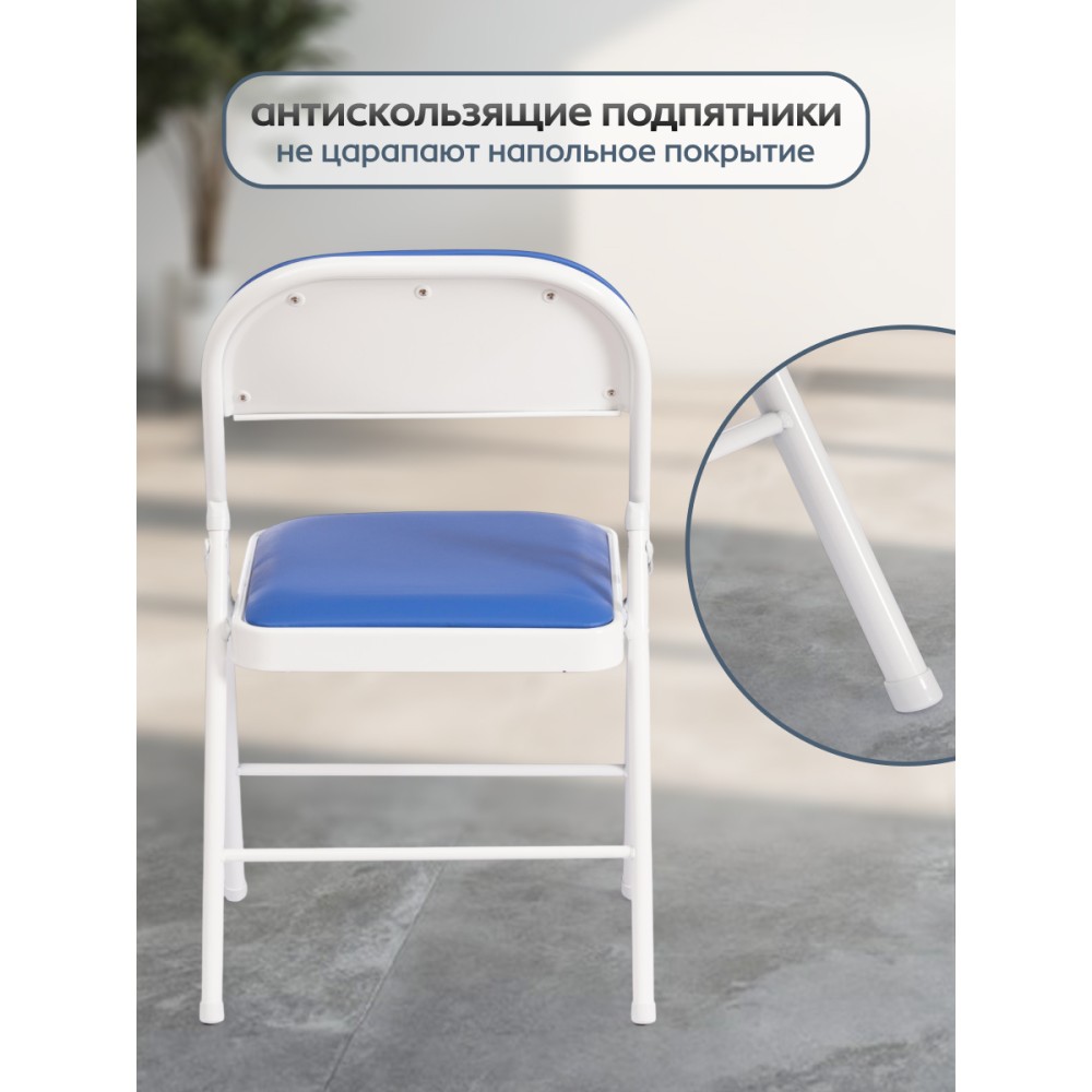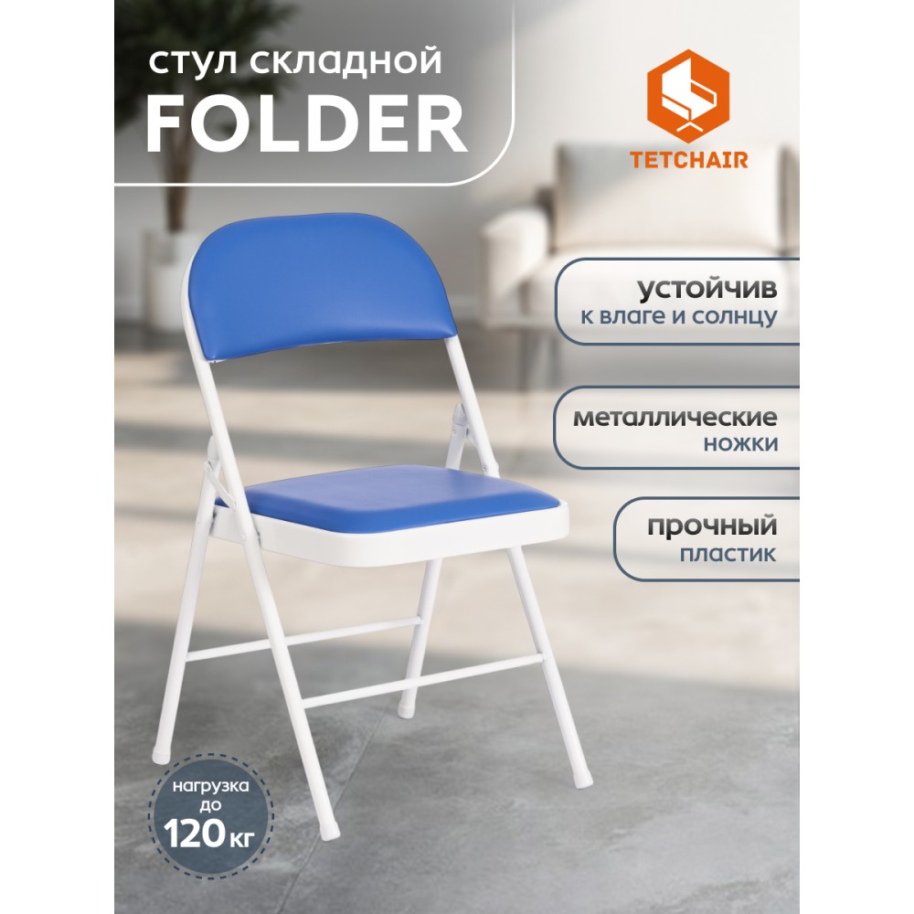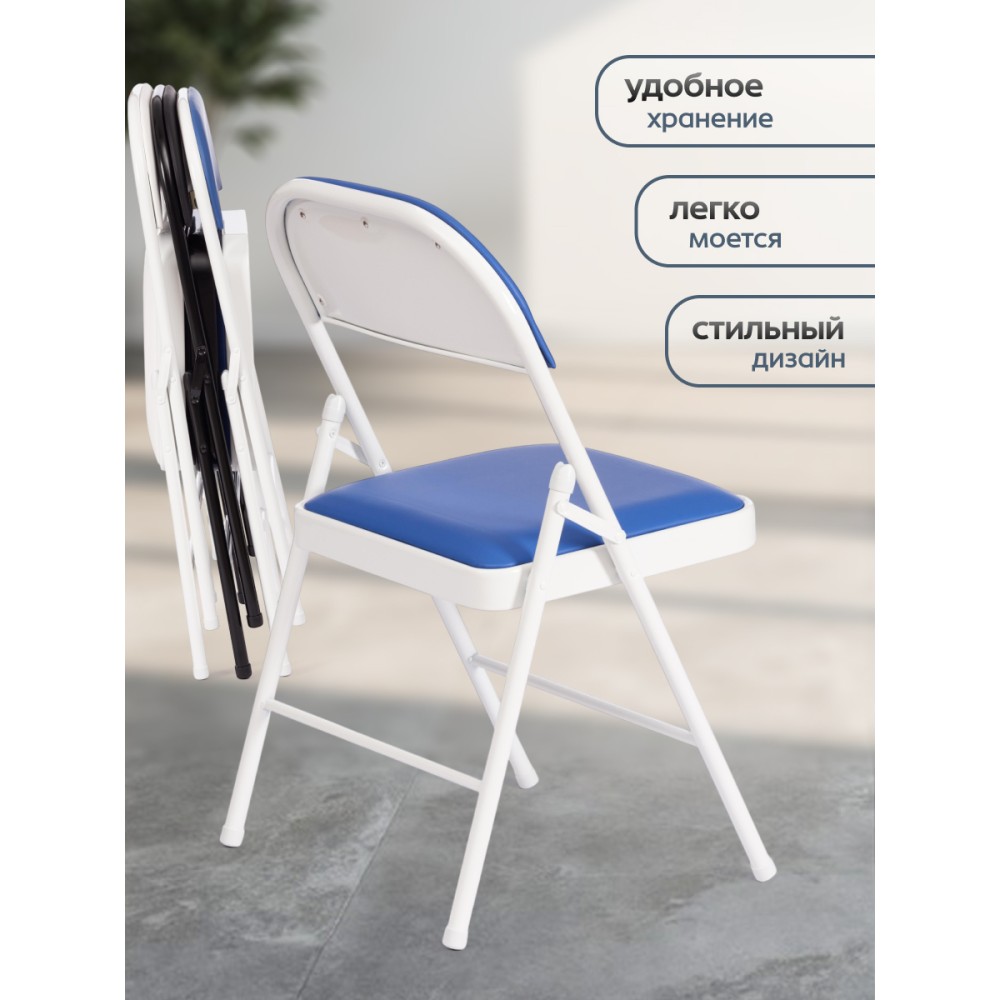 Удобный стул FOLDER mod. 3022G из коллекции Modern – идеальное решение даже для небольшого помещения. Он удобный и легкий. Удачное сочетание металлического каркаса белого цвета с сиденьем из экокожи синего цвета придает изделию особую привлекательность, оригинальность и визуальную легкость. В стуле используется экокожа прочностью 50 000 циклов по Мартендейлу. Простой и комфортный стул можно расположить в любом месте комнаты и переместить при необходимости. Он легко складывается и раскладывается, не занимает много места при хранении. Обивка из экокожи не мнётся, не меняет форму, экологична и гипоаллергенна. Надежный каркас изготовлен из металла, стул не требует сложного ухода и будет долгие годы радовать вас своим первоначальным видом. Стул хорошо подойдет для кухни, дачи , балкона, офиса, бар или кафе.