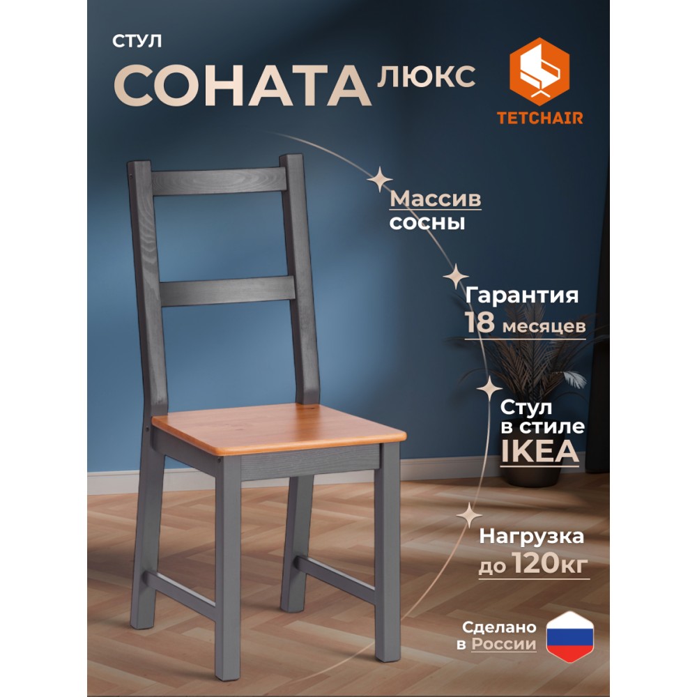 Обеденный стул Соната из Дельфийской коллекции — это стильный и функциональный элемент интерьера вашей кухни или столовой. Стул с прочным и долговечным каркасом из массива сосны. Античный оттенок сиденья стульев в сочетании с графитовым цветом каркаса придаёт интерьеру элегантность. Стул будет хорошо смотреться как в городской квартире, так и в загородном доме, в столовой или на кухне, на террасе или веранде. Мебель поставляется в разобранном виде и легко собирается согласно инструкции.
