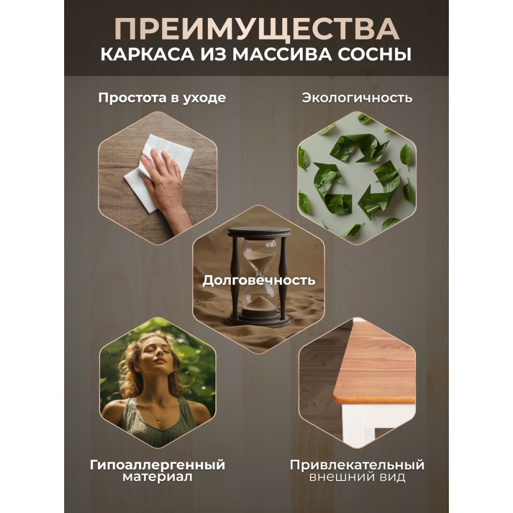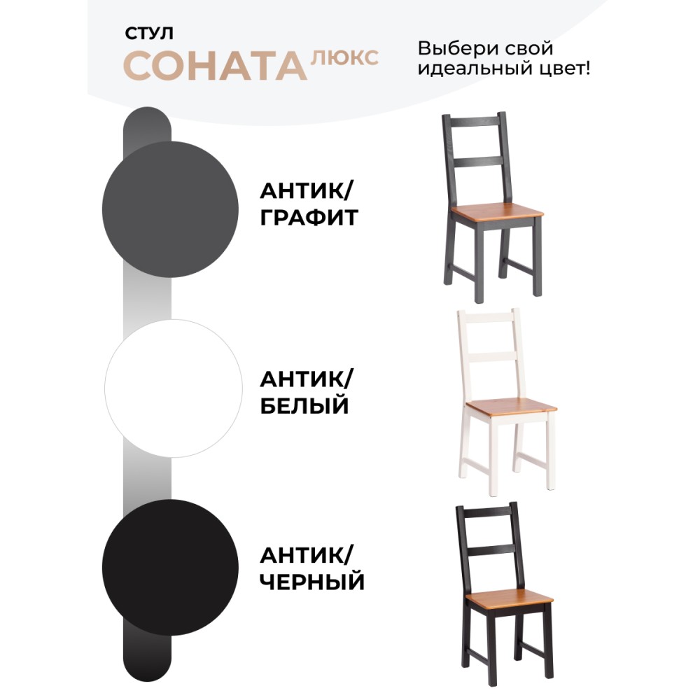 Обеденный стул Соната из Дельфийской коллекции — это стильный и функциональный элемент интерьера вашей кухни или столовой. Стул с прочным и долговечным каркасом из массива сосны. Античный оттенок сиденья стульев в сочетании с белым цветом каркаса придаёт интерьеру элегантность. Стул будет хорошо смотреться как в городской квартире, так и в загородном доме, в столовой или на кухне, на террасе или веранде. Мебель поставляется в разобранном виде и легко собирается согласно инструкции.