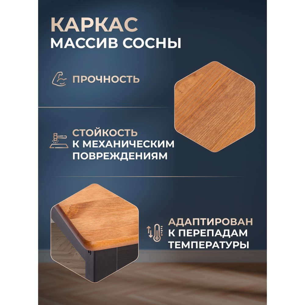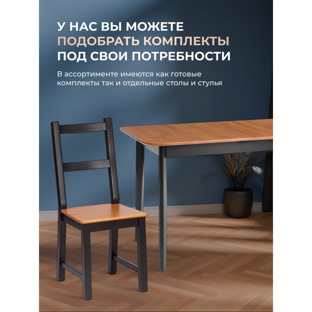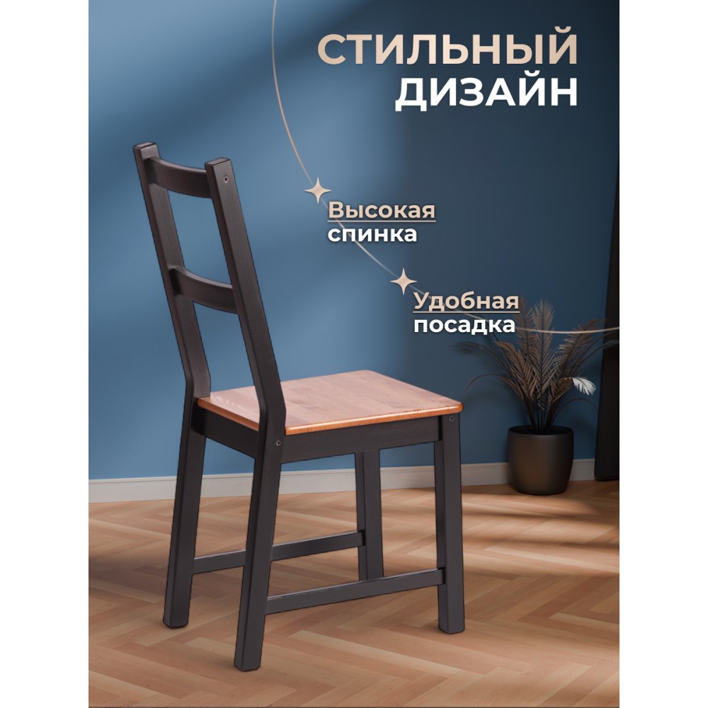 Обеденный стул Соната из Дельфийской коллекции — это стильный и функциональный элемент интерьера вашей кухни или столовой. Стул с прочным и долговечным каркасом из массива сосны. Античный оттенок сиденья стульев в сочетании с черным цветом каркаса придаёт интерьеру элегантность. Стул будет хорошо смотреться как в городской квартире, так и в загородном доме, в столовой или на кухне, на террасе или веранде. Мебель поставляется в разобранном виде и легко собирается согласно инструкции.