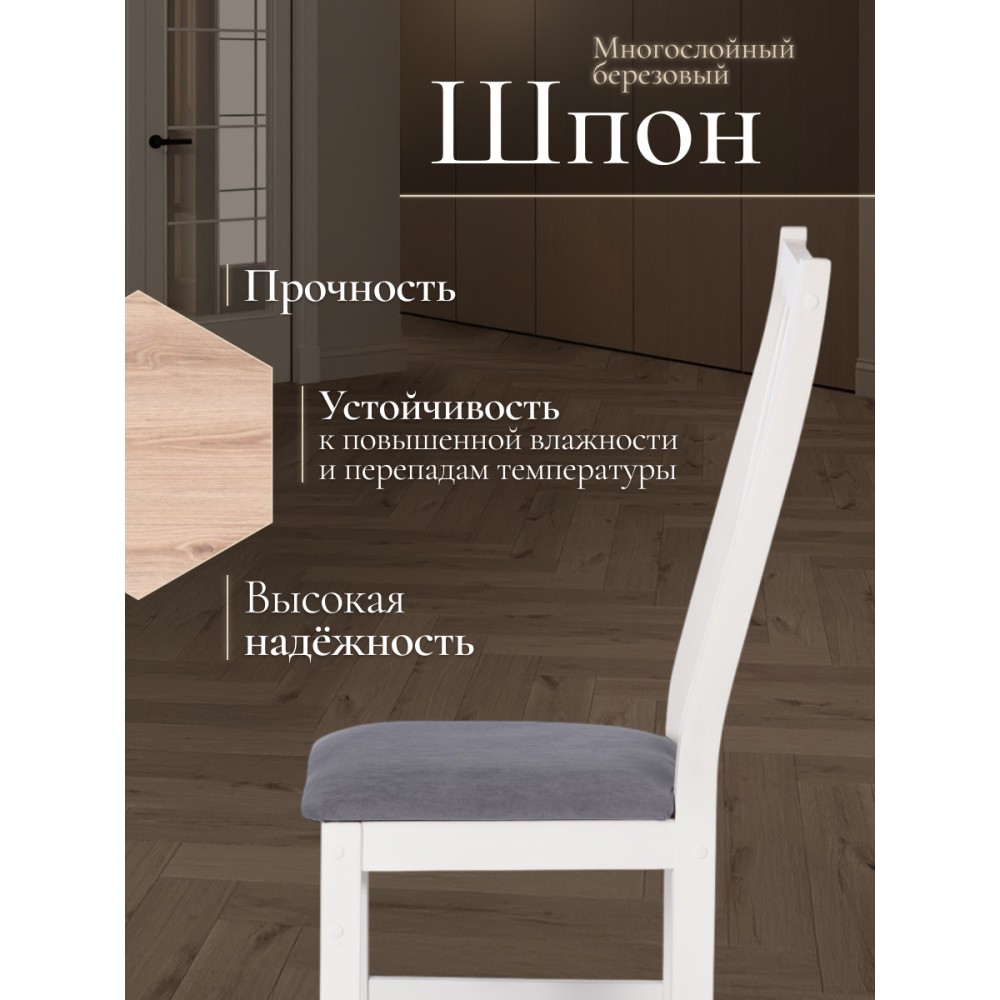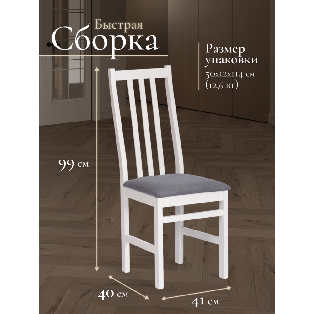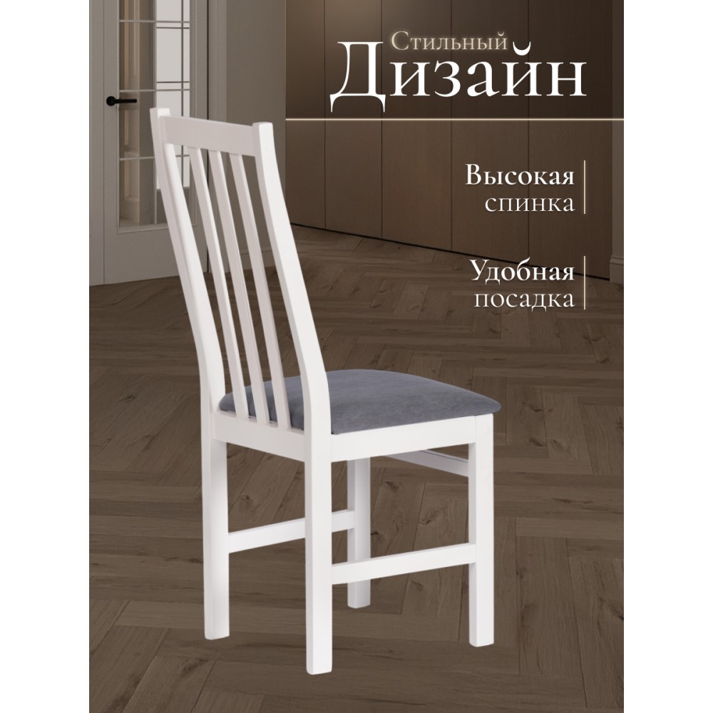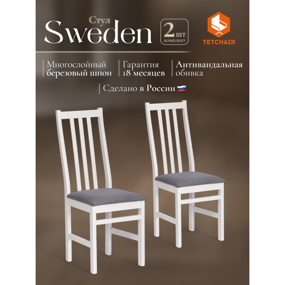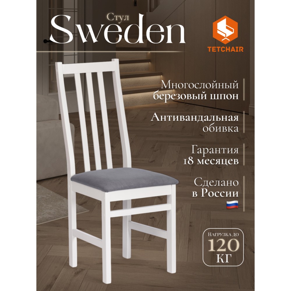 Классический деревянный стул SWEDEN из Дельфийской коллекции - незаменимый предмет мебели на кухне, в гостиной или столовой. Высокая удобная спинка, тонкие устойчивые ножки и мягкое сиденье помогут создать атмосферу комфорта и уюта в вашем загородном доме, городской квартире, кафе или ресторане. Экологически безопасный каркас стула изготовлен из многослойного березового шпона. Он не требует сложного ухода, устойчив к механическим воздействиям, что позволяет использовать стул на протяжении многих лет. Мягкая тканевая обивка сиденья не теряет форму, проста в обслуживании и чистке. Прочное основание стула в белом цвете (White) прекрасно комбинируется с темно-серым тканевым сиденьем, что позволяет вписать стул в любой интерьер. Практичная и оригинальная модель SWEDEN обладает прекрасными эстетическими свойствами и долговечностью. Стул поставляется в разобранном виде, необходима несложная сборка по инструкции. Инструкция прилагается.