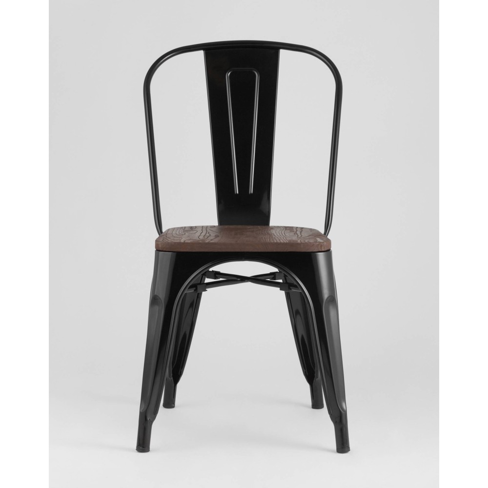 Стул Stool Group TOLIX WOOD черный глянцевый, основание и спинка оцинкованный металл, сиденье тёмное дерево
