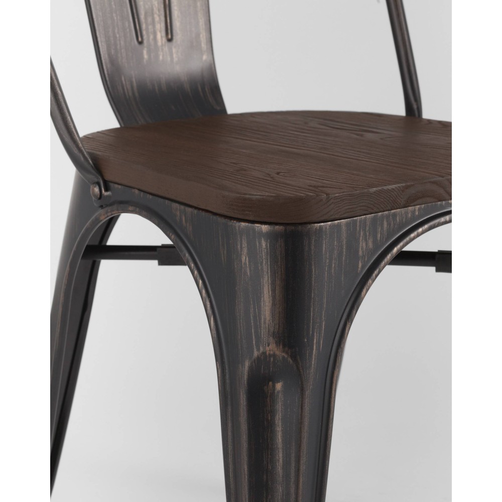 Стул Stool Group TOLIX WOOD черный патина золото, основание и спинка оцинкованный металл, сиденье тёмное дерево