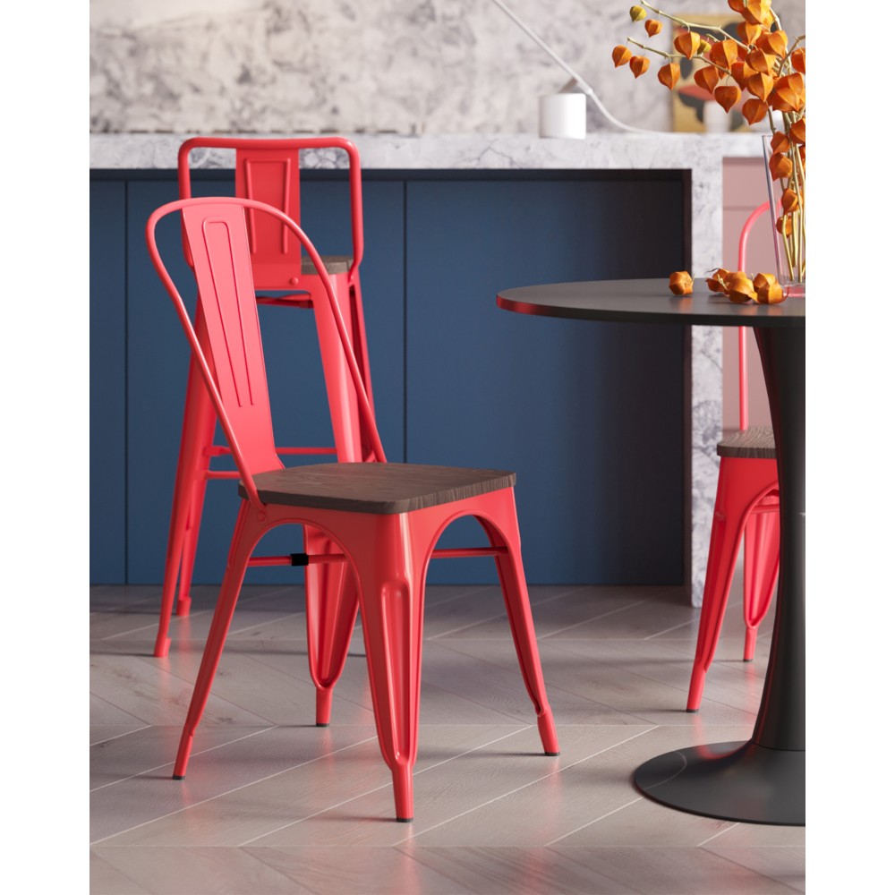 Стул Stool Group TOLIX WOOD красный глянцевый, основание и спинка оцинкованная сталь, сиденье тёмное дерево