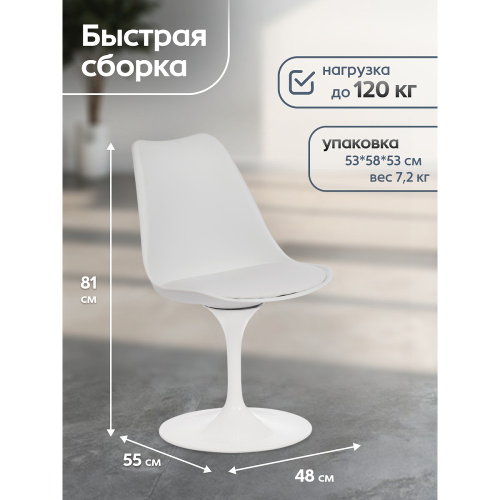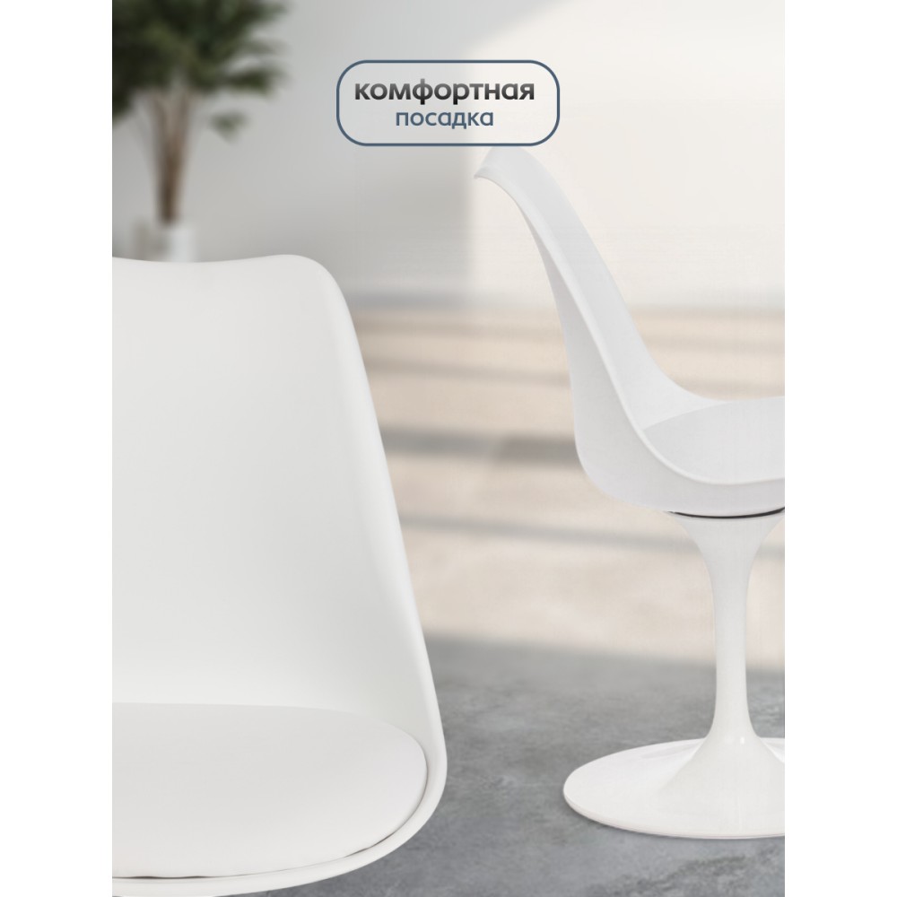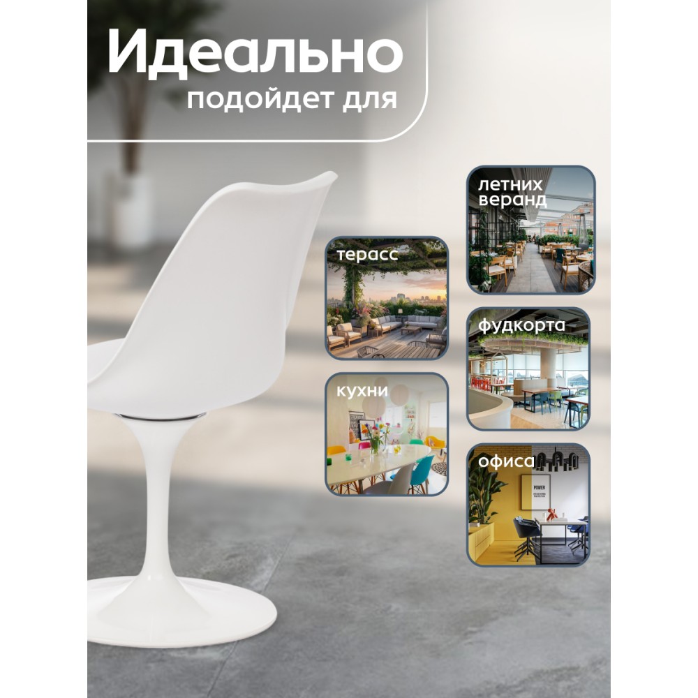 Великолепный стул TULIP FASHION CHAIR из коллекции Modern выполнен в стиле известной работы американского архитектора Ээро Сааринена - стула Tulip, который он спроектировал в середине двадцатого века. Уникальная форма стула и сочетание цветов идеально соответствуют концепции современного стильного пространства. Стул подкупает своей универсальностью и комфортной посадкой, благодаря которым варианты его расположения в интерьере безграничны. Цельная спинка и сиденье из белого пластика с мягкой накладкой из полиуретана белого цвета обеспечат удобную посадку на протяжении длительного времени. Металлическая ножка и круглое основание придают стулу большую устойчивость. Накладка из полиуретана – красивая, надежная, не требующая сложного ухода. Пластик и металл – прочные и долговечные материалы, способные выдерживать большую нагрузку. Стул хорошо подойдет для гостиной, для кухни, для спальни, для ресторана или для кафе. Стул очень прост в сборке, инструкция по сборке прилагается.