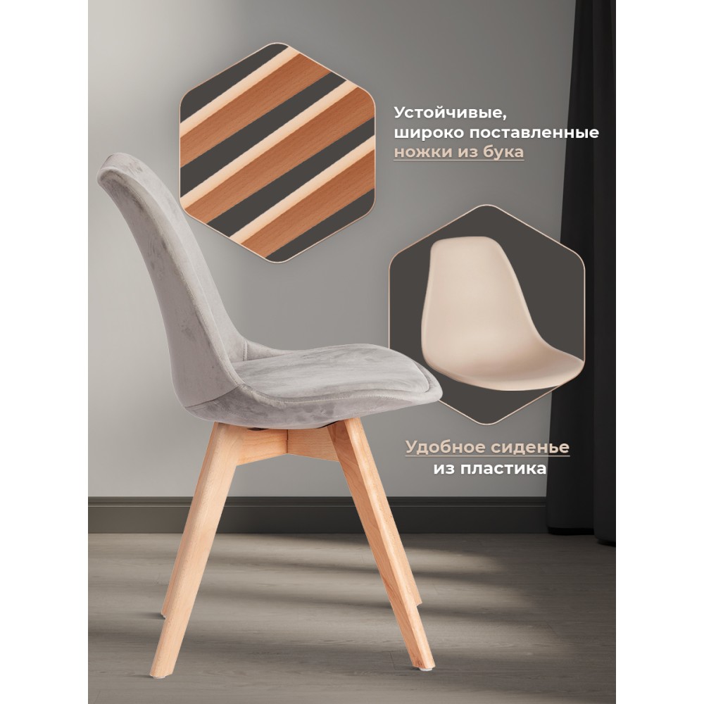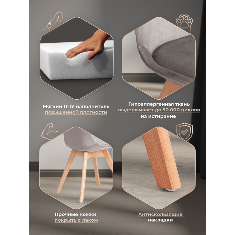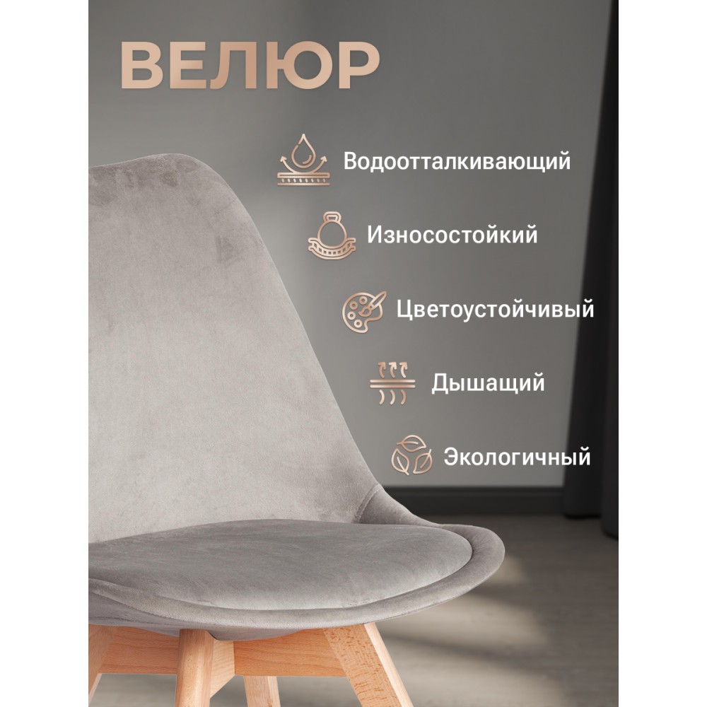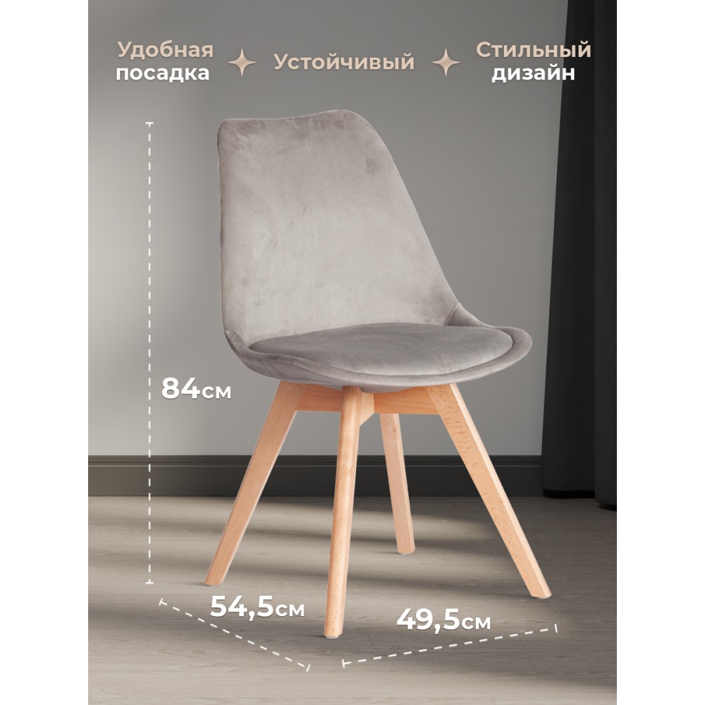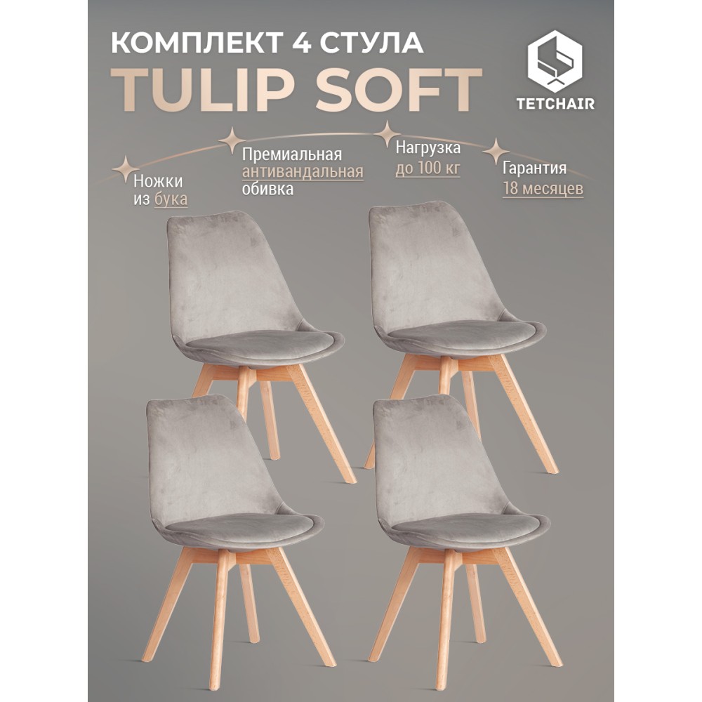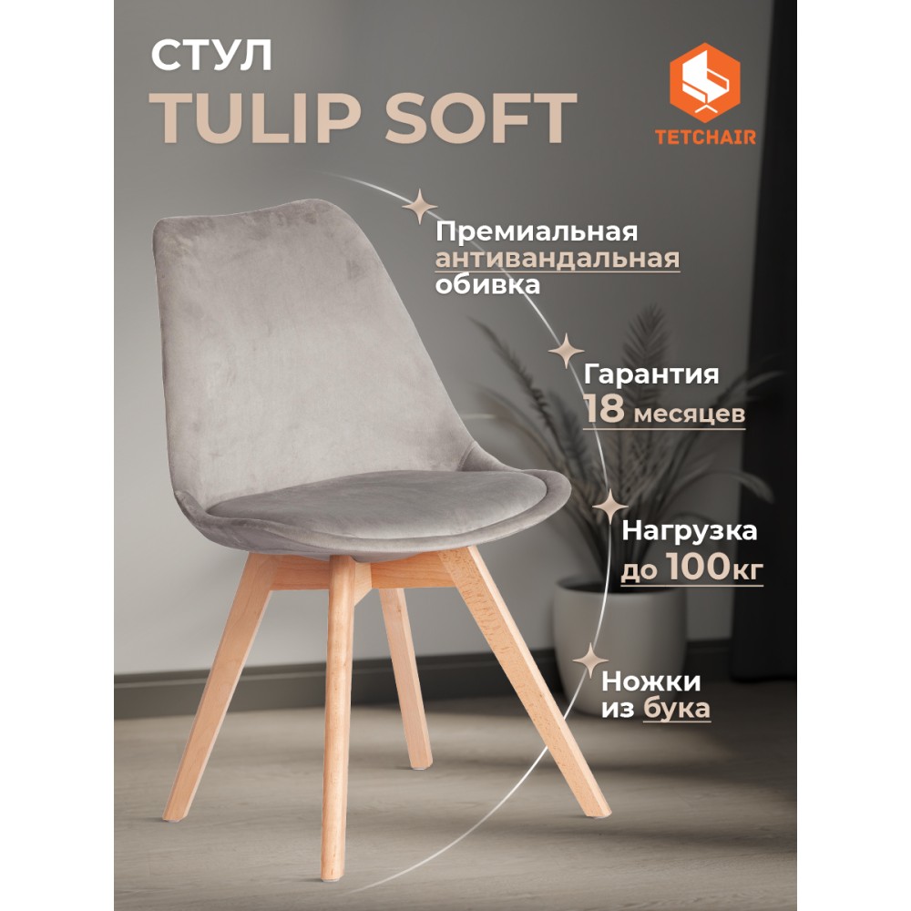 Дизайн изумительного по красоте стула TULIP SOFT из коллекции Modern вдохновлен работами американского архитектора Ээро Сааринена, который в середине двадцатого века создал знаменитый стул Tulip. Одновременно простая и привлекательная форма стула позволяет поставить его в любой комнате: кухне, гостиной, спальне, детской. Мягкая обивка из вельвета светло-серого цвета восхищает своей красотой. Стул всегда будет находиться в центре внимания в вашем интерьере. Цельная спинка и сиденье обеспечат удобную посадку на протяжении длительного времени. Бархатистая и приятная на ощупь поверхность обивки подарит максимальный комфорт и уют. Благодаря четырем деревянным ножкам модель устойчива и надежна. Вельвет обладает повышенной износостойкостью, не мнётся, не меняет форму, способен на долгие годы сохранить свой первоначальный цвет, не протираясь и не выцветая. Стул хорошо подойдет для гостиной, для кухни, для спальни, для ресторана или для кафе. Стул очень прост в сборке, инструкция по сборке прилагается.