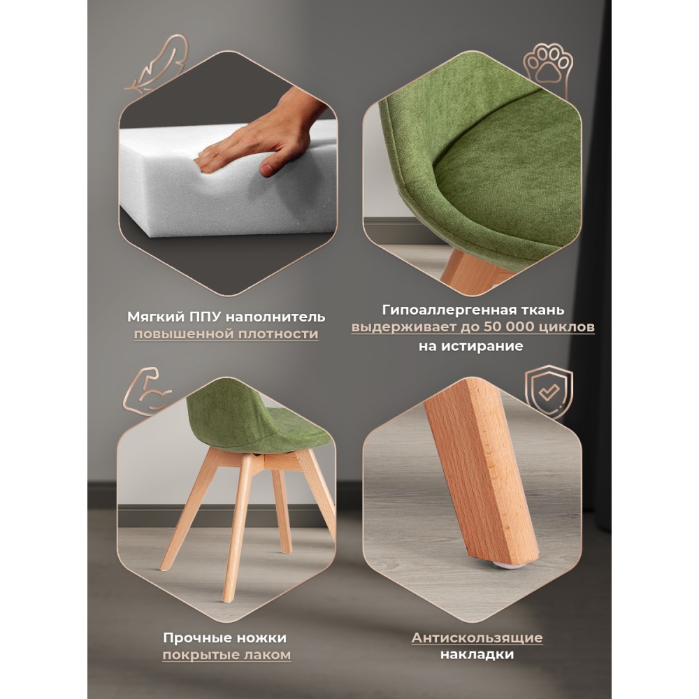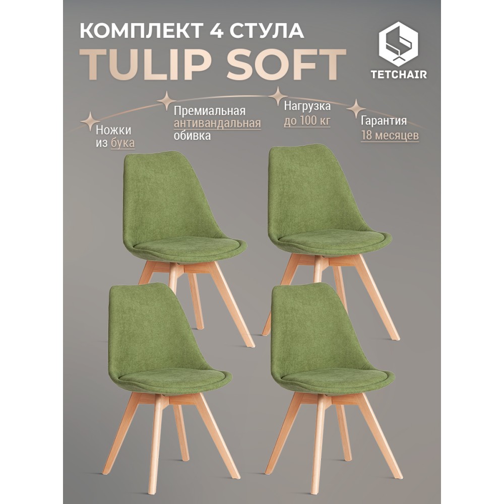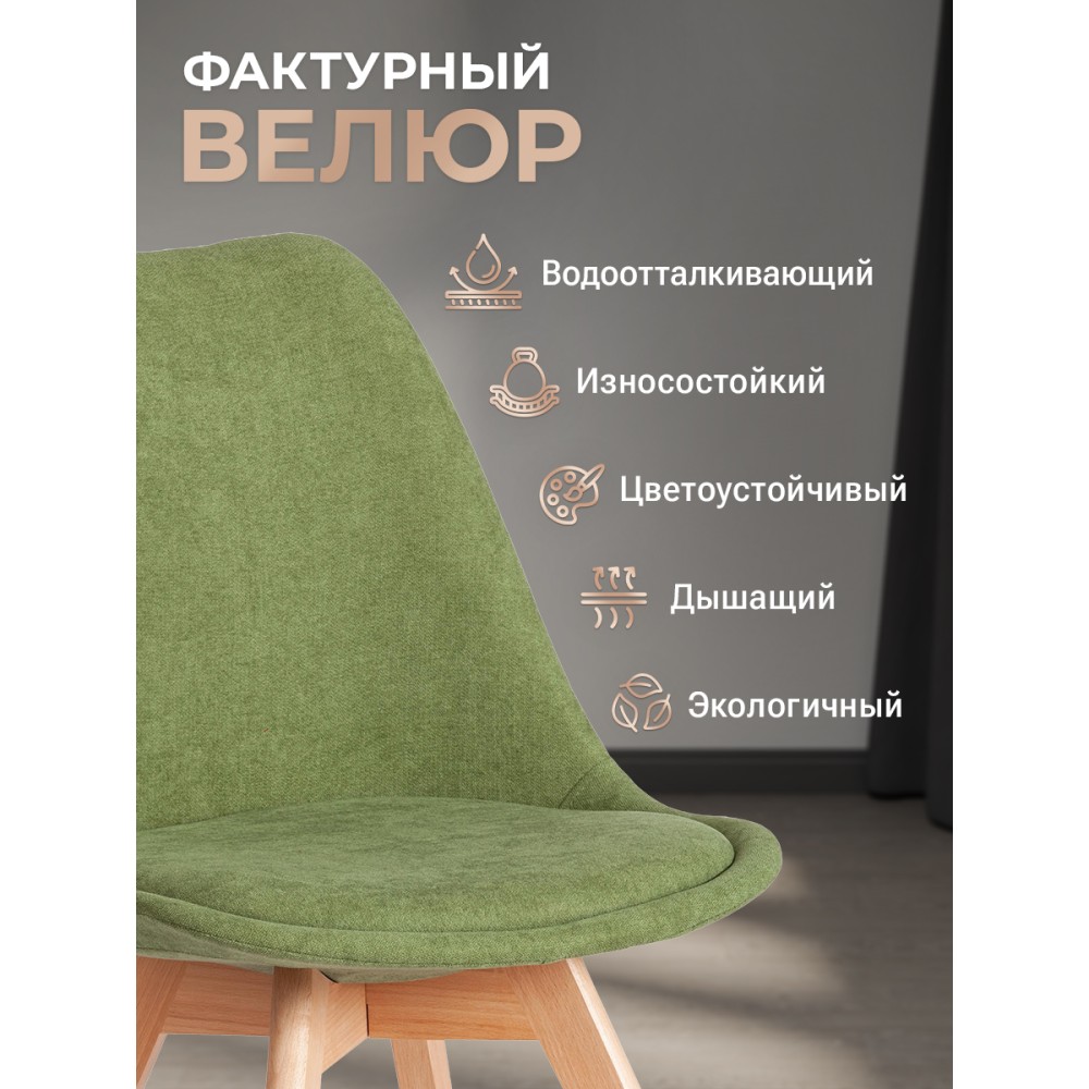 Дизайн изумительного по красоте стула TULIP SOFT из коллекции Modern вдохновлен работами американского архитектора Ээро Сааринена, который в середине двадцатого века создал знаменитый стул Tulip. Одновременно простая и привлекательная форма стула позволяет поставить его в любой комнате: кухне, гостиной, спальне, детской. Обивка из фактурного велюра зеленого цвета восхищает своей красотой. Стул всегда будет находиться в центре внимания в вашем интерьере. Цельная спинка и сиденье обеспечат удобную посадку на протяжении длительного времени. Приятная на ощупь поверхность обивки подарит максимальный комфорт и уют. Благодаря четырем деревянным ножкам модель устойчива и надежна. Ткань обладает повышенной износостойкостью, не мнётся, не меняет форму, способен на долгие годы сохранить свой первоначальный цвет, не протираясь и не выцветая. Стул хорошо подойдет для гостиной, для кухни, для спальни, для ресторана или для кафе. Стул очень прост в сборке, инструкция по сборке прилагается.