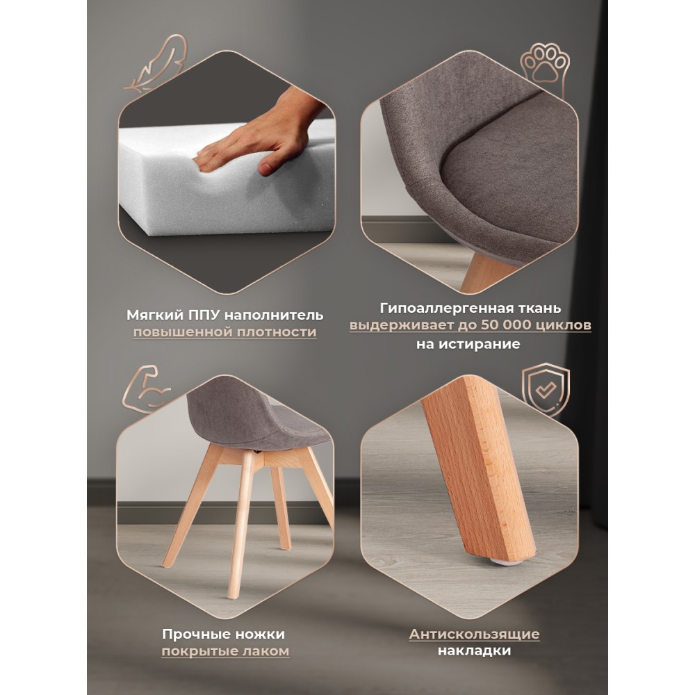 Дизайн изумительного по красоте стула TULIP SOFT из коллекции Modern вдохновлен работами американского архитектора Ээро Сааринена, который в середине двадцатого века создал знаменитый стул Tulip. Одновременно простая и привлекательная форма стула позволяет поставить его в любой комнате: кухне, гостиной, спальне, детской. Обивка фактурного велюра серого цвета восхищает своей красотой. Стул всегда будет находиться в центре внимания в вашем интерьере. Цельная спинка и сиденье обеспечат удобную посадку на протяжении длительного времени. Приятная на ощупь поверхность обивки подарит максимальный комфорт и уют. Благодаря четырем деревянным ножкам модель устойчива и надежна. Ткань обладает повышенной износостойкостью, не мнётся, не меняет форму, способен на долгие годы сохранить свой первоначальный цвет, не протираясь и не выцветая. Стул хорошо подойдет для гостиной, для кухни, для спальни, для ресторана или для кафе. Стул очень прост в сборке, инструкция по сборке прилагается