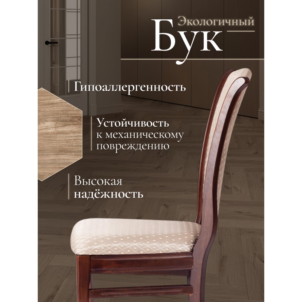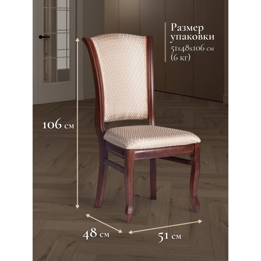 Элегантный стул VERSAL, выполненный в классическом стиле, добавит вашему интерьеру оригинальность, утонченность и грациозность. Изысканная модель отлично подойдет для гостиной или столовой, спальни или рабочего кабинета. Уникальный стул изготовлен из массива бука. Такая древесина долговечна, прочна, устойчива к растрескиванию, проста в уходе. Привлекательная модель в цвете Tobacco обита износостойким коричневым жаккардом. Мягкое удобное сиденье не деформируется, не меняет форму со временем, пропускает воздух. Изогнутая спинка позволит комфортно и расслабленно отдохнуть после трудового дня. Конструкция ножек стула дополнительно укреплена поперечными планками, что обеспечивает модели устойчивость и надежность в использовании. Классический стул VERSAL сочетает в себе элегантность и практичность, идеально подходит для создания уютной обстановки в вашем доме, будет отлично смотреться в любом интерьере. Сборка не требуется.