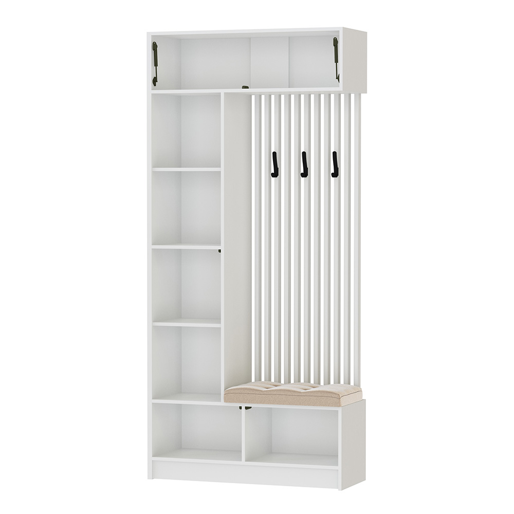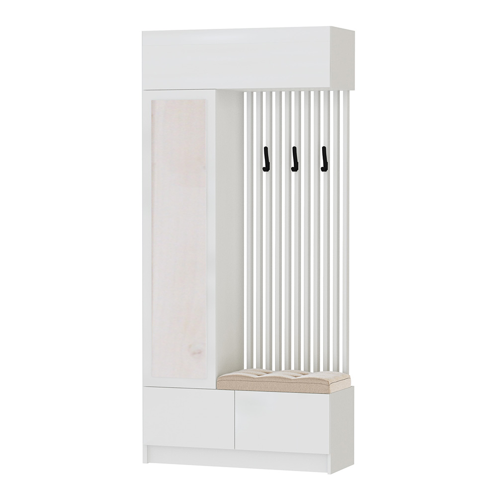 Благодаря стильному дизайну и компактным размерам вешалка Руэлла впишется в малогабаритную прихожую или квартиру-студию. Наличие полок, надежные крючки и ниша под обувь позволят разместить верхнюю одежду, уличную и домашнюю обувь, сезонные аксессуары и головные уборы, а наличие мягкого сидения добавит комфорта от ежедневных сборов перед выходом на улицу.