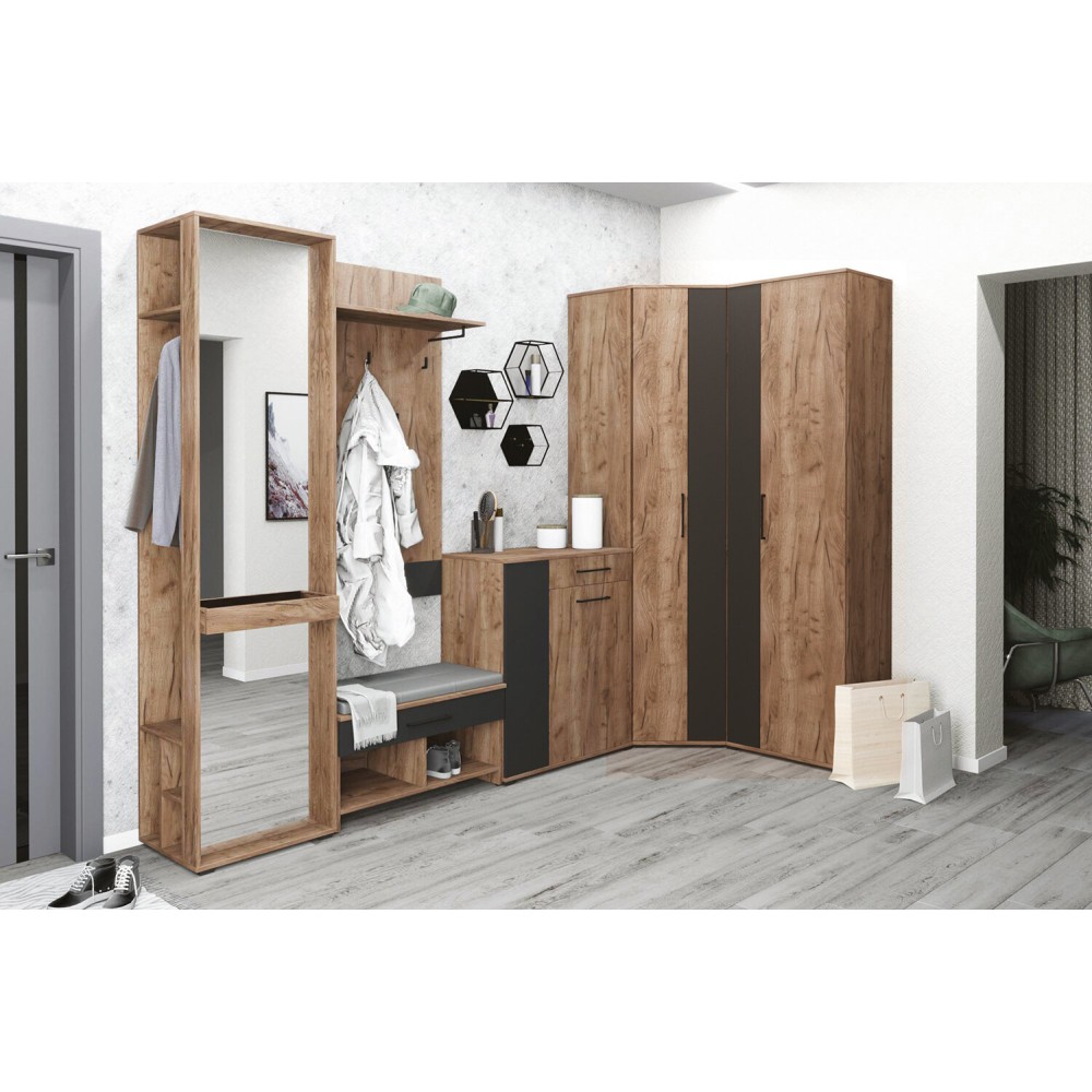 В поисках стильной и многофункциональной прихожей обратите внимание на мебель для прихожей Noto. Коллекция представлена набором базовых модулей, комбинируя которые между собой, Вы сможете грамотно обустроить входную зону. Благодаря конструкции шкафов, тумб и вешалки у Вас появится место для хранения верхней одежды, сезонных аксессуаров, уличной и домашней обуви, домашних мелочей, а также зона для обувания. Мебель изготовлена из ЛДСП высокого качества и представлена в актуальном цветовом решении - сочетании дуба табачного и черного крафта.