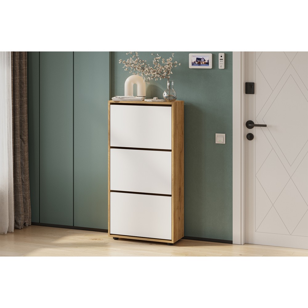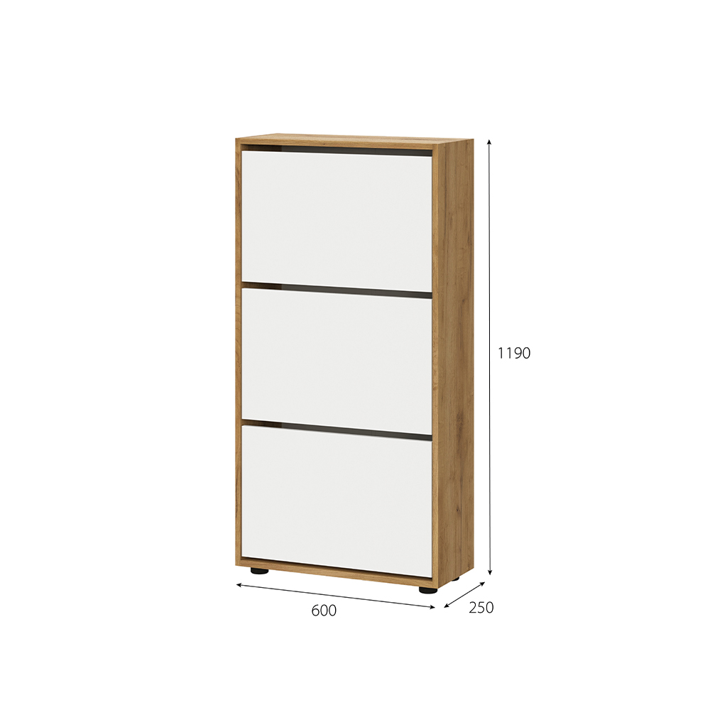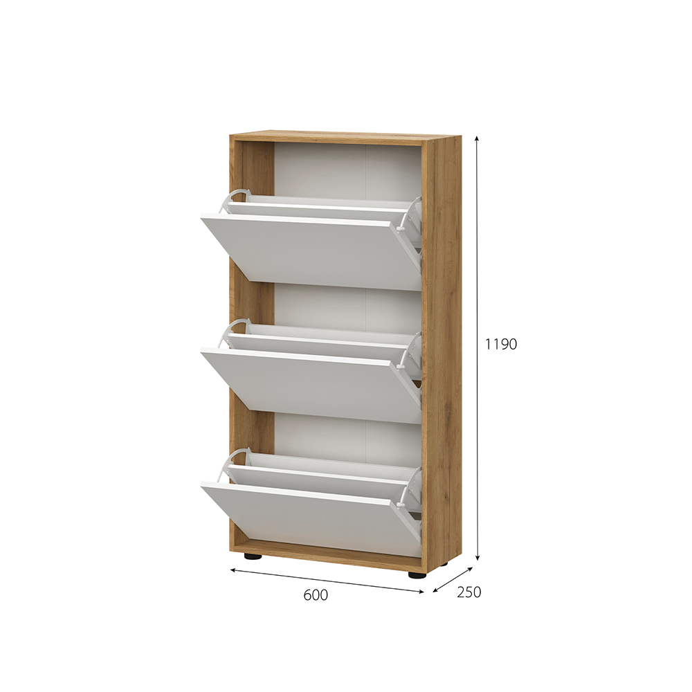 Каждый из трех ящиков обеспечит достаточно места для хранения различных моделей обуви – от кроссовок до туфель. Ящики легко открываются и закрываются, позволяя быстро находить нужную пару.
