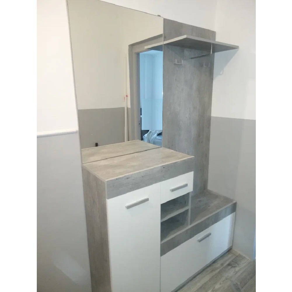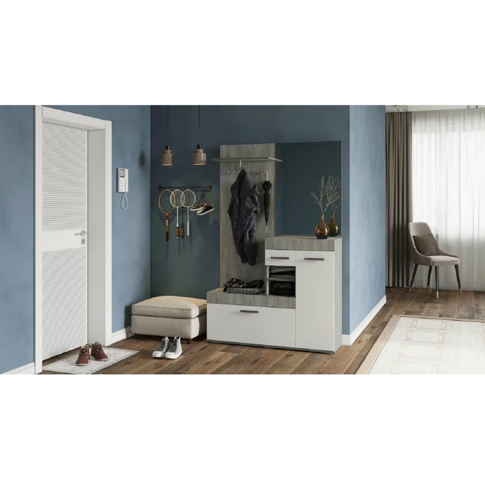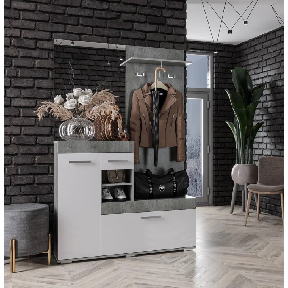 Прихожая Инстайл в цвете бетон и белый — идеальное сочетание стиля и функциональности для вашего дома. Эта прихожая изготовлена из высококачественных материалов, обеспечивающих долговечность и надёжность. Благодаря своему современному дизайну она легко впишется в любой интерьер и сделает вашу прихожую уютной и функциональной.