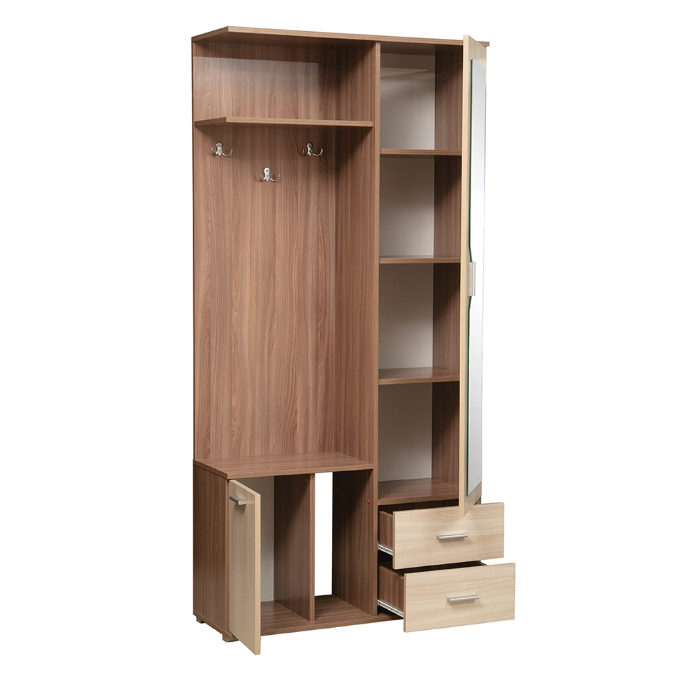 Благодаря стильному дизайну и компактным размерам вешалка Кармен-1 впишется в малогабаритную прихожую или квартиру-студию. Наличие полок, надежные крючки и ниша под обувь позволят разместить верхнюю одежду, уличную и домашнюю обувь, сезонные аксессуары и головные уборы.