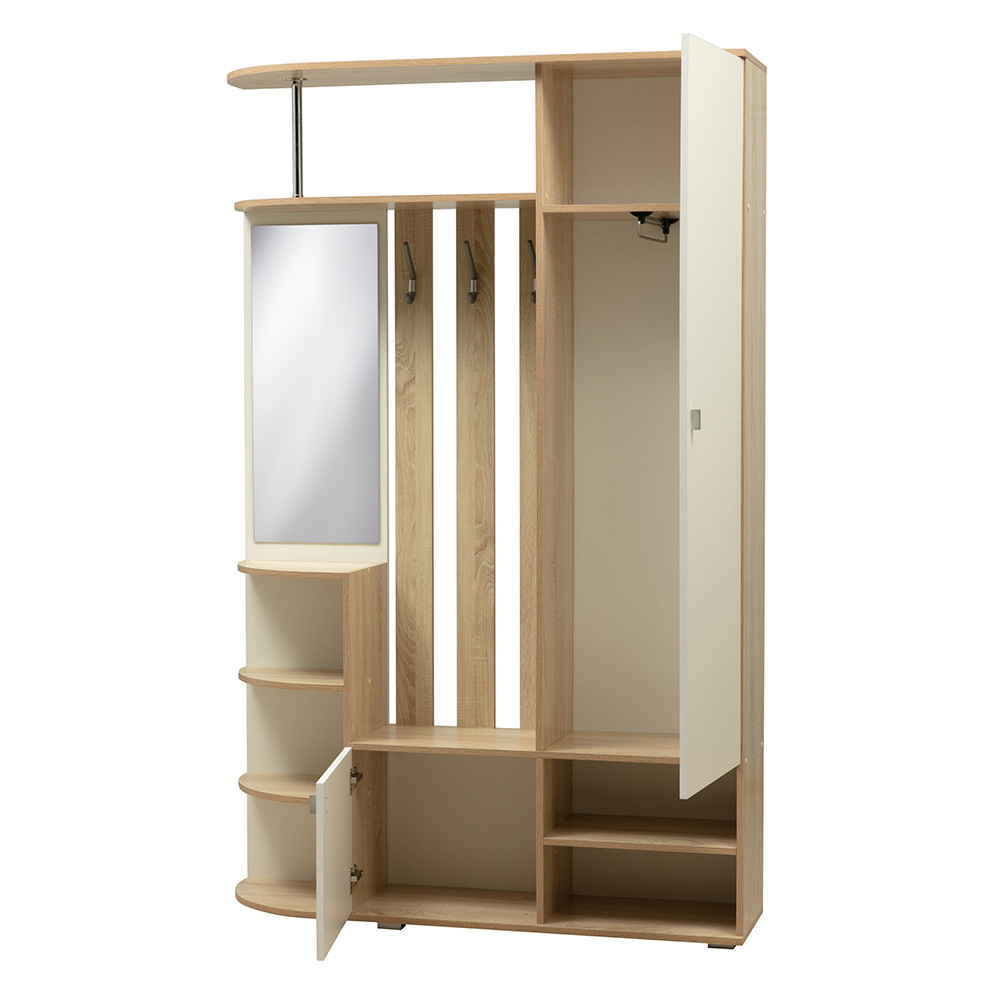 Благодаря стильному дизайну и компактным размерам вешалка Кармен-7 впишется в малогабаритную прихожую или квартиру-студию. Наличие полок, надежные крючки и ниша под обувь позволят разместить верхнюю одежду, уличную и домашнюю обувь, сезонные аксессуары и головные уборы.