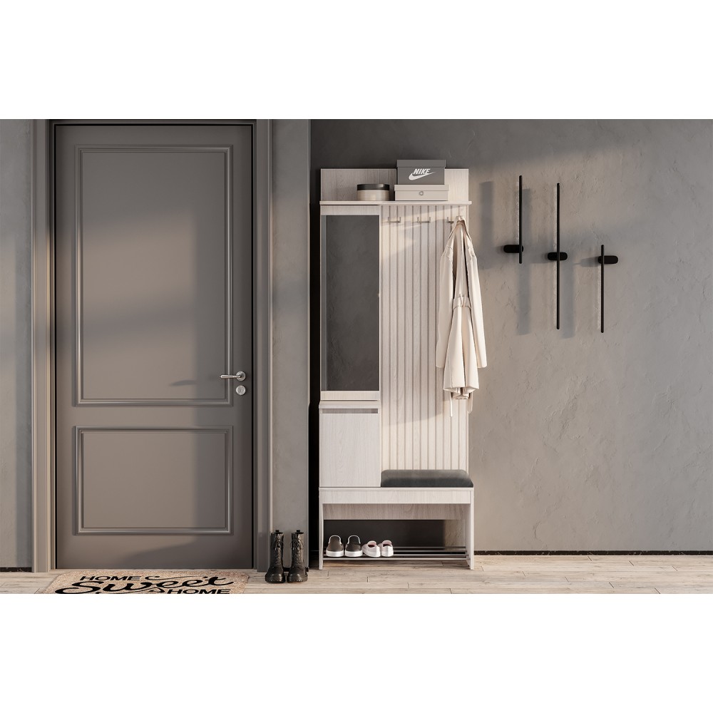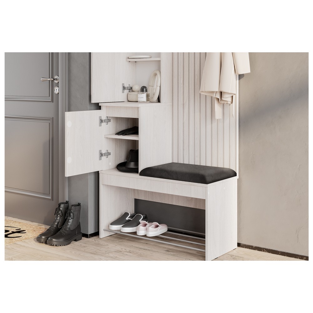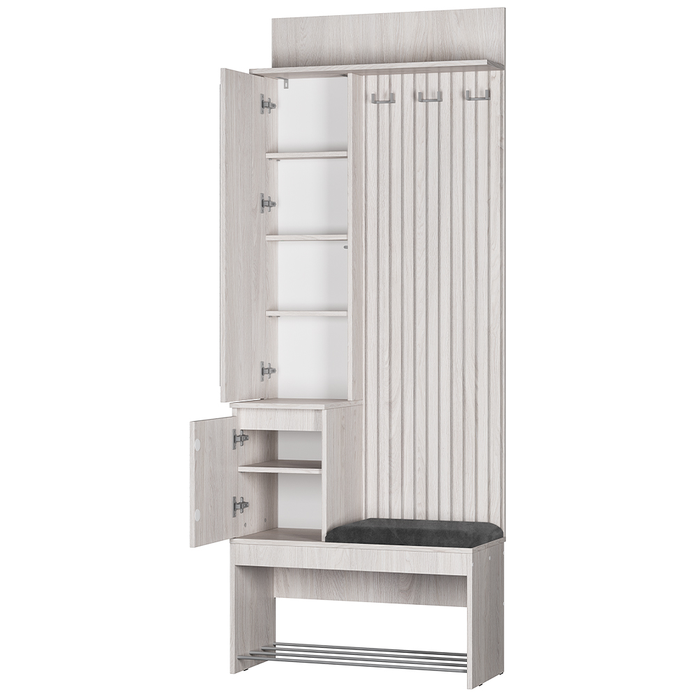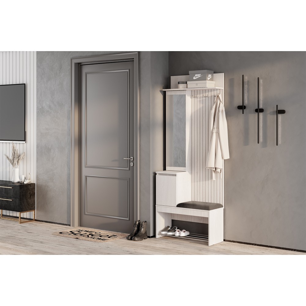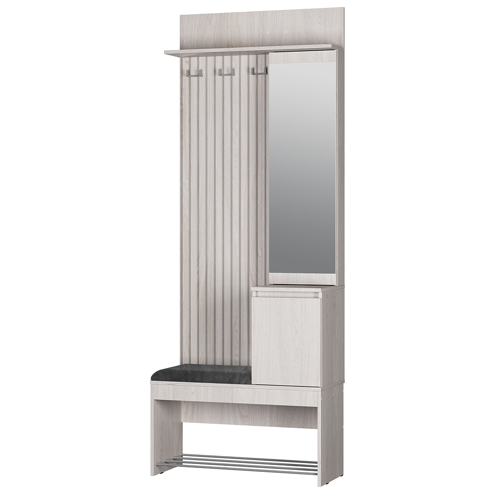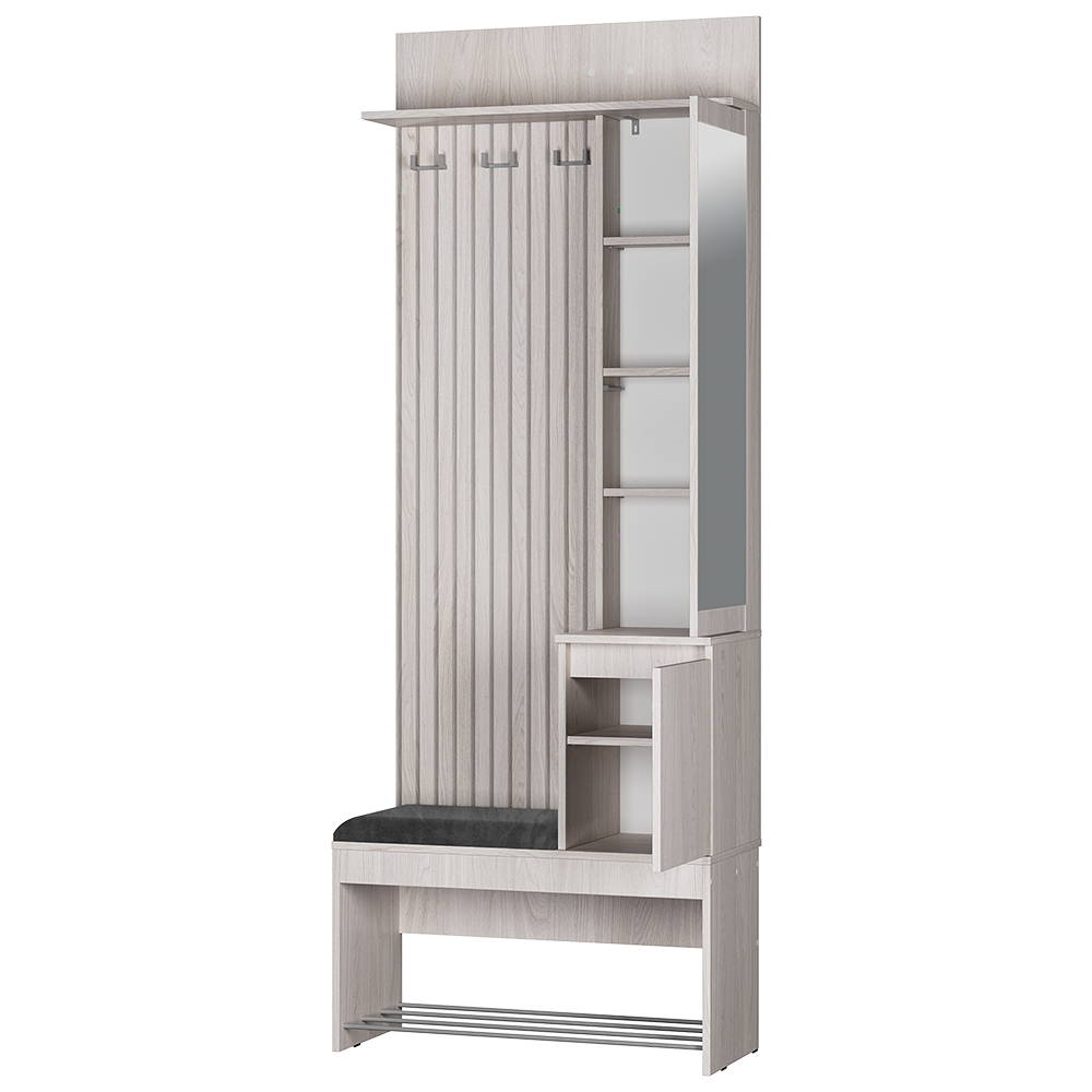 Лама ПР-07 — лучший выбор для небольшой прихожей. Модель оснащена зеркалом, вместительными ящиками для мелочей и аксессуаров, а также просторным отсеком для обуви. Верхнюю одежду можно аккуратно разместить на удобных крючках. Для головных уборов в прихожей также предусмотрена специальная полка.