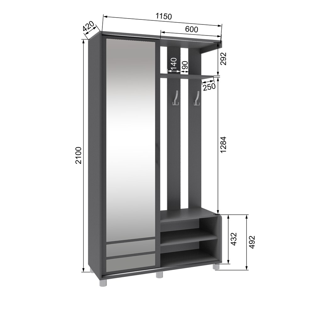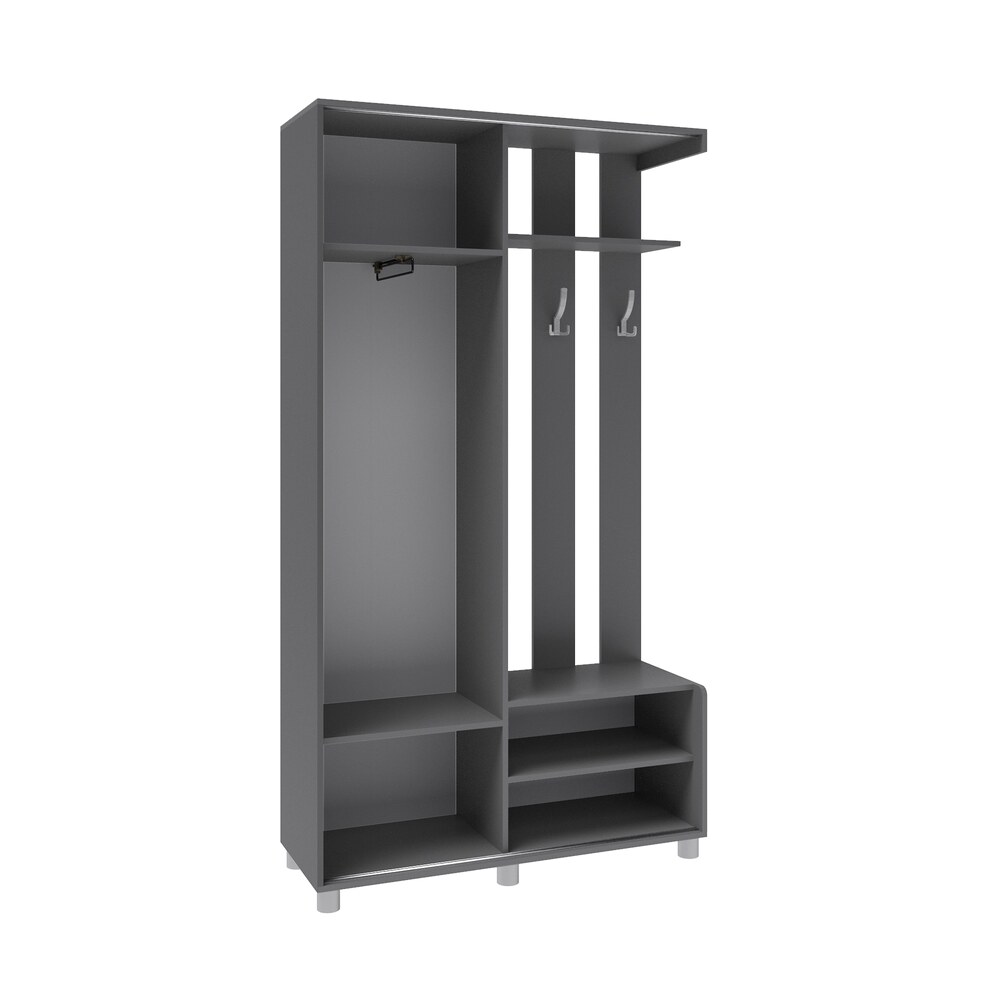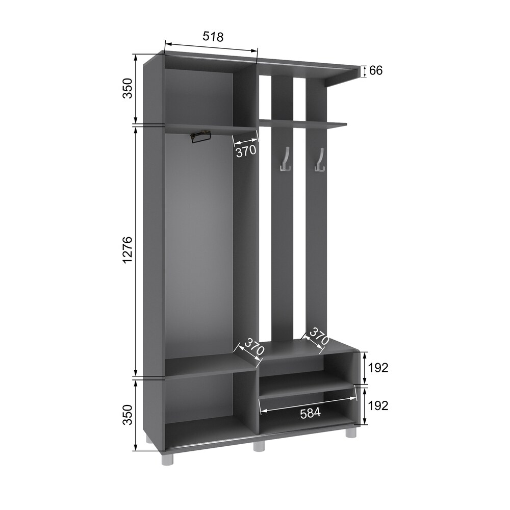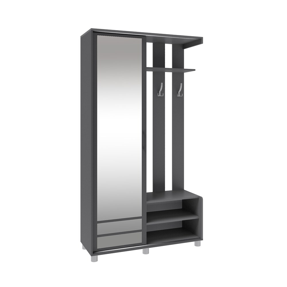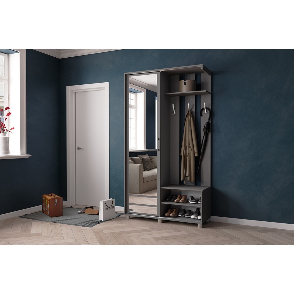 Готовое решение для прихожей Ларго-2 сочетает в себе универсальный дизайн, компактный размер и продуманное наполнение. Модуль оснащен евроштангой за зеркальной дверцей для верхней одежды на плечиках, 2-мя закрытыми полками, открытой тумбой под обувь, 3-мя надежными крючками и верхней полкой для аксессуаров. Это отличный вариант для организации храния в малогабаритной прихожей или узком коридоре.