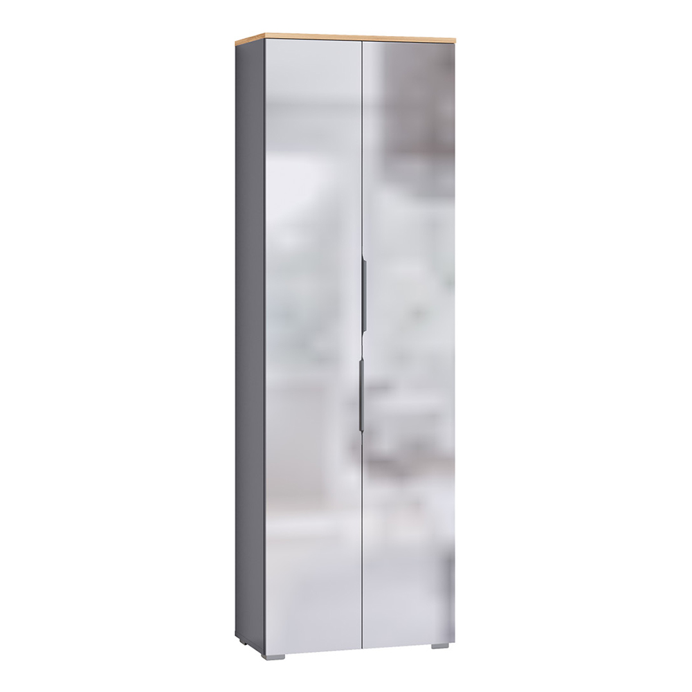 Зеркальные створки шкафа визуально расширяют пространство, а минималистичные алюминиевые ручки подчеркивают легкость и простоту линий.