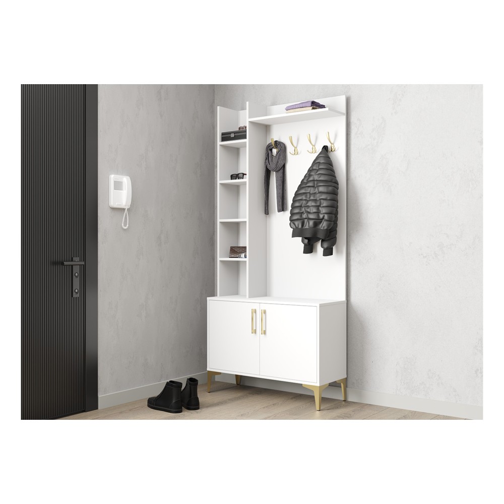 Полки подойдут для хранения ключей, шарфов и других мелочей, которые часто нужны на выходе.