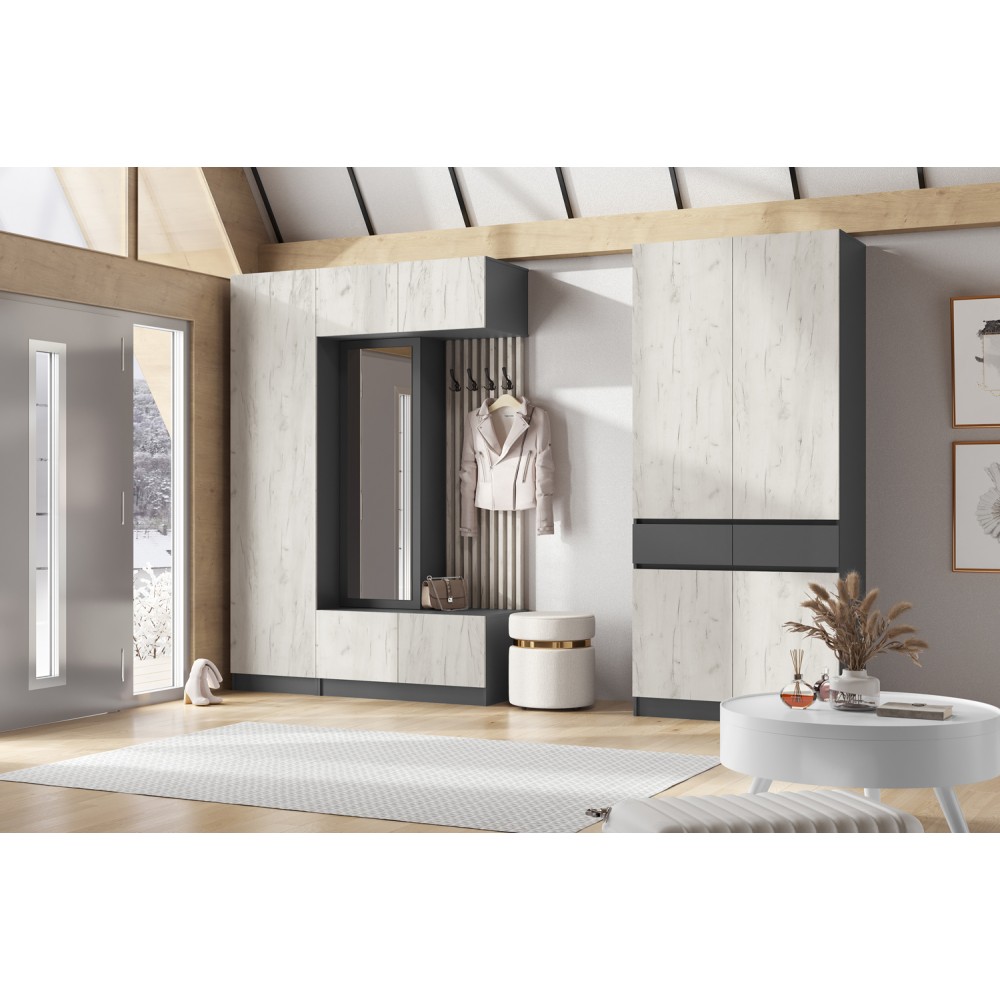 Прихожая Роджина — это стильное и функциональное решение для организации пространства в прихожей. Такая модель объединяет в себе несколько полезных элементов, позволяя максимально эффективно использовать доступное место. На крючках можно удобно разместить верхнюю одежду и аксессуары.