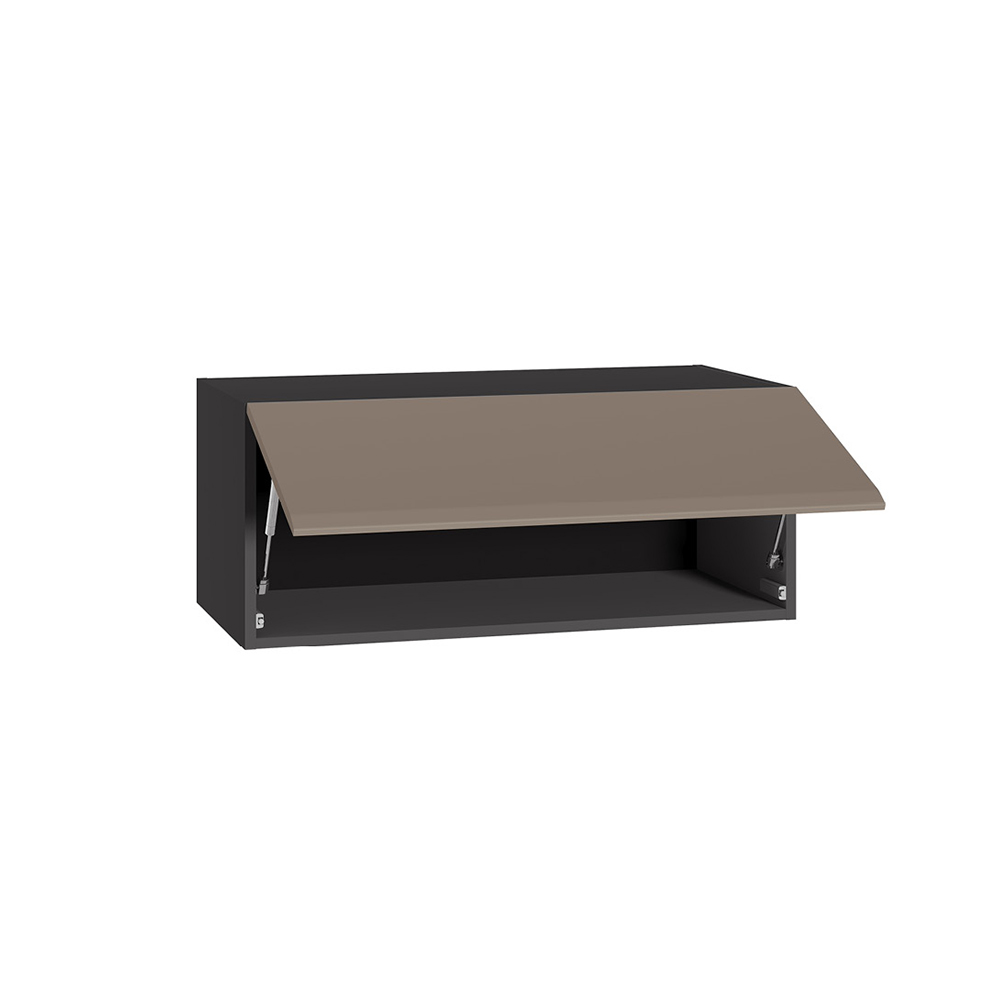 Минималистичные фасады в трендовом цвете без лицевой фурнитуры открываются за край либо нажатием (push-to-open).
