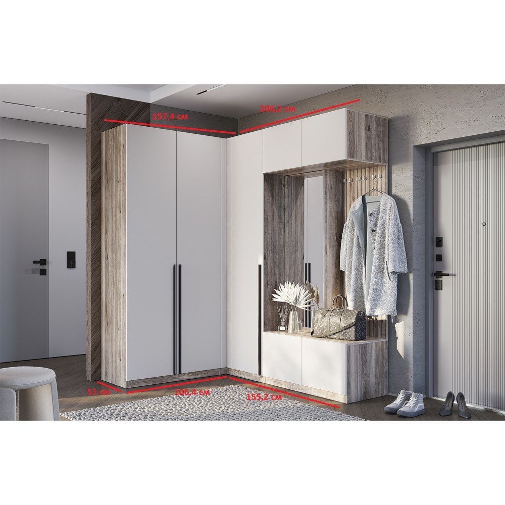 Прихожая Урбан в цветах дуб смоки и кашемир — это стильное и функциональное решение для вашей прихожей. Она выполнена из качественных материалов и оснащена всем необходимым для удобного хранения вещей. Сочетание этих двух цветов позволяет прихожей гармонично вписаться в любой интерьер.