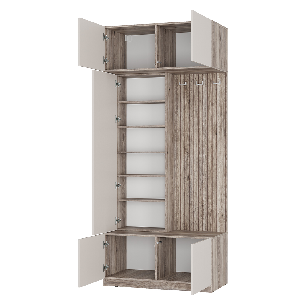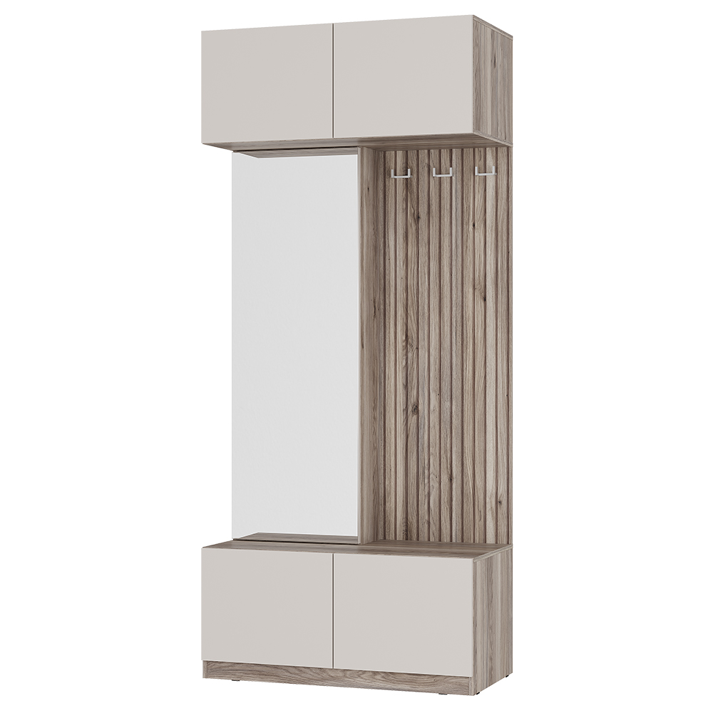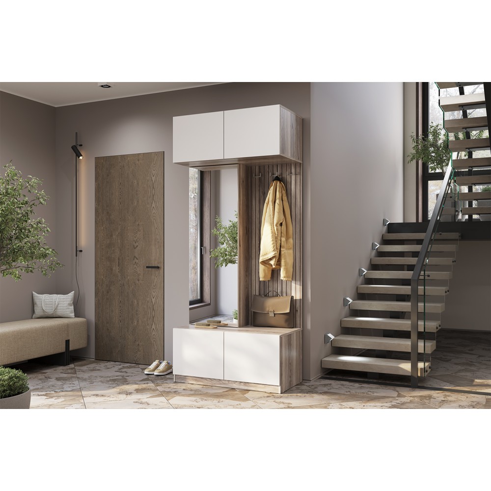 Стильная и компактная прихожая Урбан ПР-03 с фотопечатью представляет собой идеальное сочетание открытых и закрытых зон для хранения верхней одежды, головных уборов, обуви и аксессуаров.