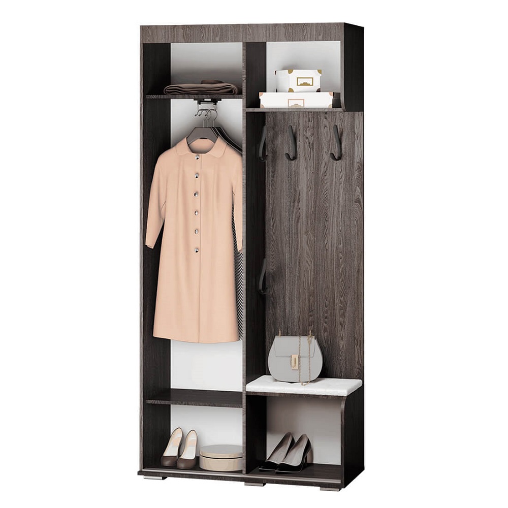 Прихожая Варда — идеальное решение для вашего коридора. Тёмный ясень и белый цвет придают ей стильный и современный вид. Благодаря удобной обувнице с сиденьем и компактным размерам прихожая легко впишется в любой интерьер. Внутреннее наполнение включает полку для головных уборов сверху и полку для обуви снизу, а также выдвижную евроштангу. Регулируемые опоры позволяют скрыть неровности пола.