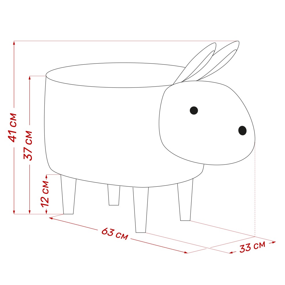 Забавные уши, круглый носик и глазки-пуговки вызовут у ребенка неописуемый восторг. Ведь на этом забавном зверьке можно не только сидеть, с ним еще можно подружиться. Банкетка выдерживает нагрузки до 80 кг! Прочный каркас в сочетании с устойчивыми ножками предотвращает деформацию и повреждения.